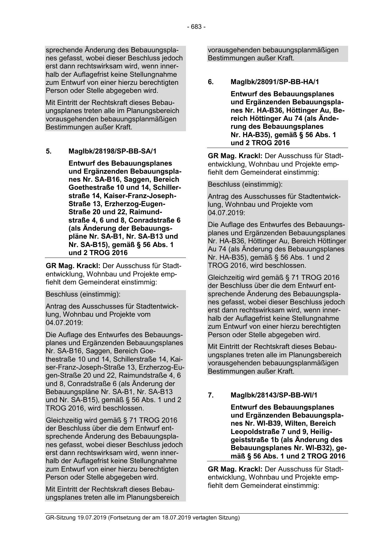 GR-Sitzung 19.07.2019 (Fortsetzung der am 18.07.2019 vertagten Sitzung)