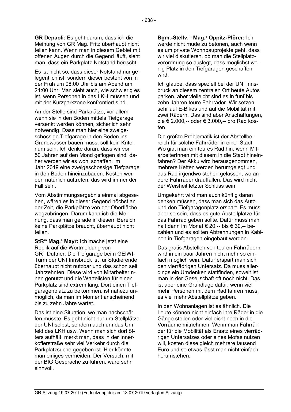 GR-Sitzung 19.07.2019 (Fortsetzung der am 18.07.2019 vertagten Sitzung)