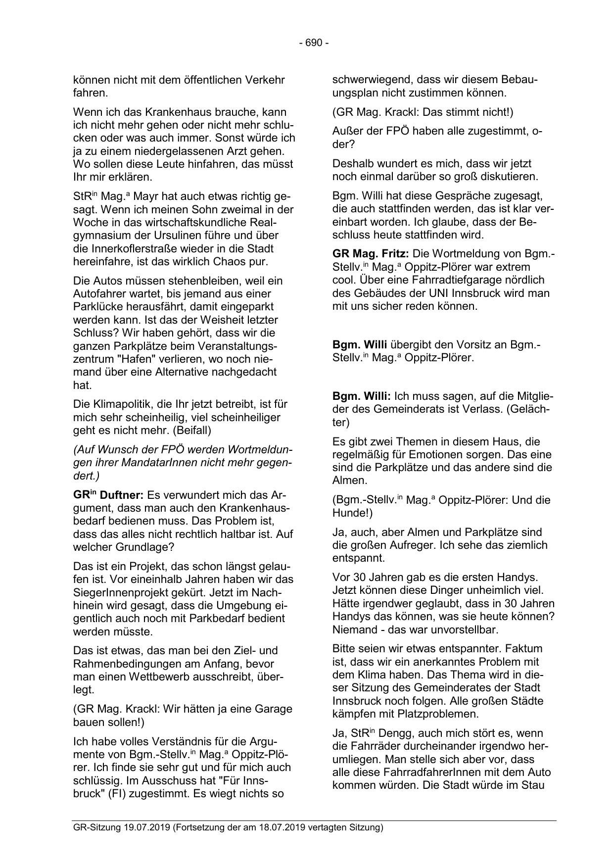 Bgm. Willi übergibt den Vorsitz an Bgm.Stellv.in Mag.a Oppitz-Plörer.