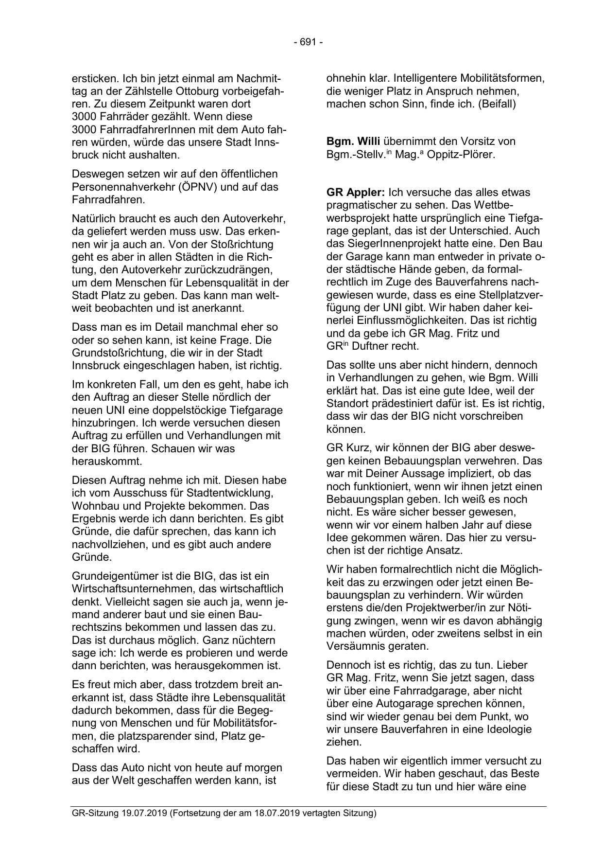 GR-Sitzung 19.07.2019 (Fortsetzung der am 18.07.2019 vertagten Sitzung)