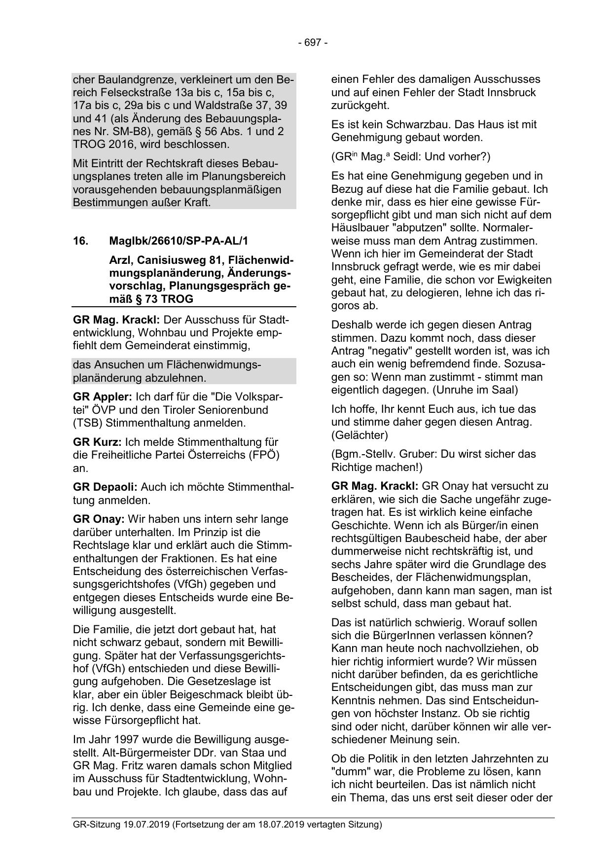 GR-Sitzung 19.07.2019 (Fortsetzung der am 18.07.2019 vertagten Sitzung)