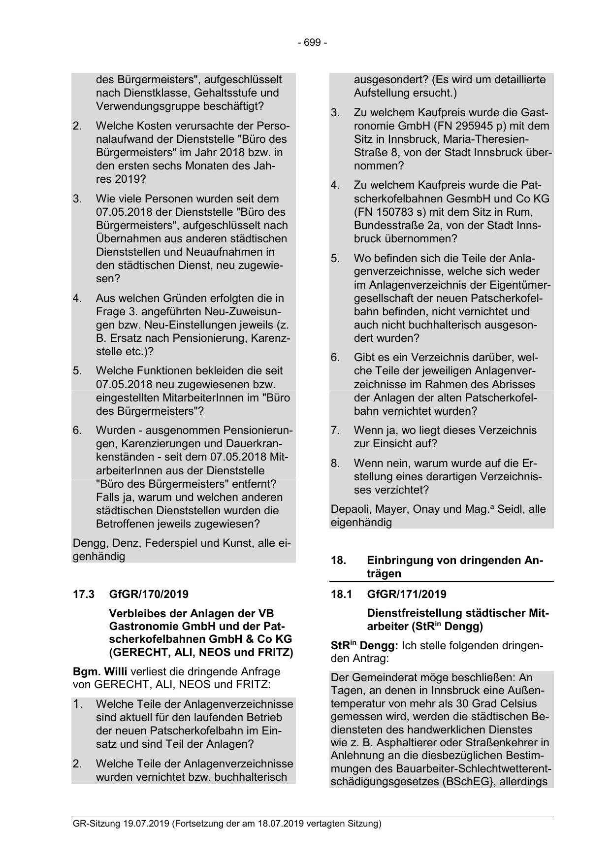 GR-Sitzung 19.07.2019 (Fortsetzung der am 18.07.2019 vertagten Sitzung)