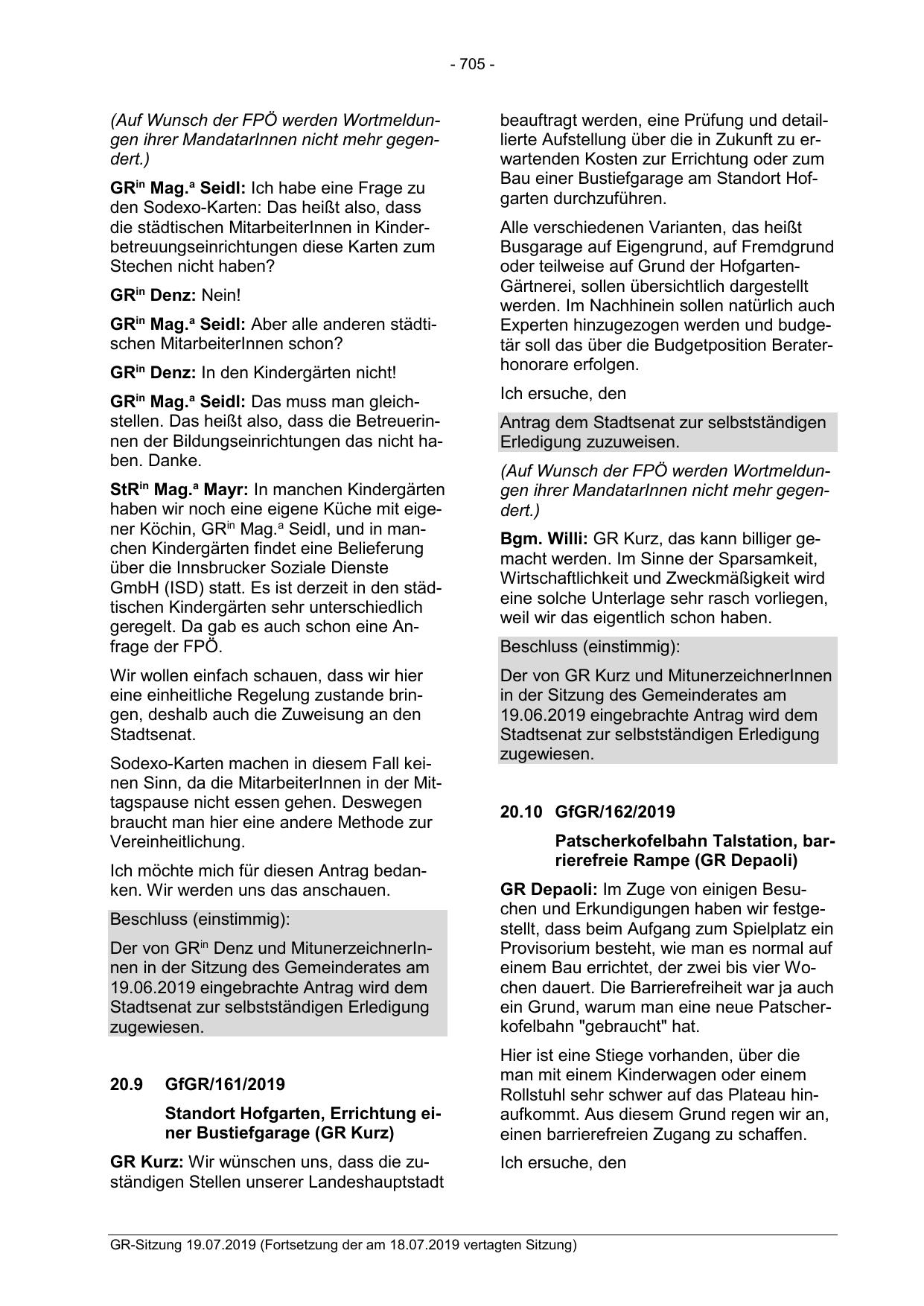 GR-Sitzung 19.07.2019 (Fortsetzung der am 18.07.2019 vertagten Sitzung)