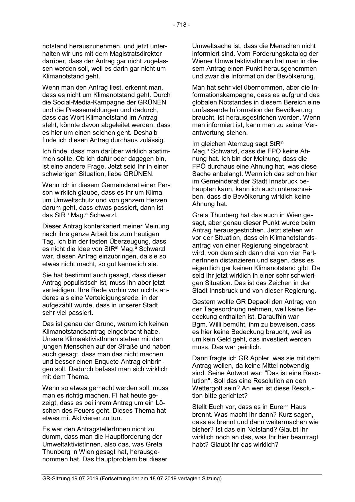 im Gemeinderat der Stadt Innsbruck behaupten kann, kann ich auch unterschreiben, dass die Bevölkerung wirklich keine