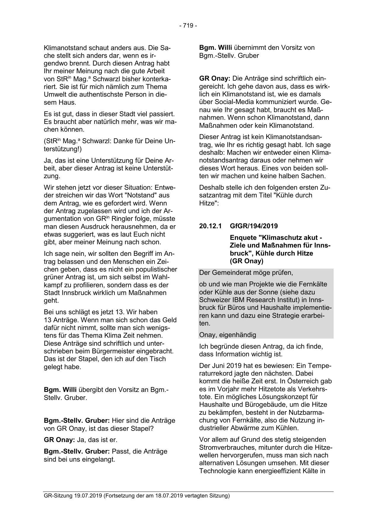 GR-Sitzung 19.07.2019 (Fortsetzung der am 18.07.2019 vertagten Sitzung)