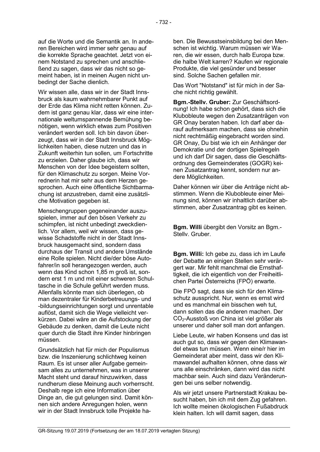 GR-Sitzung 19.07.2019 (Fortsetzung der am 18.07.2019 vertagten Sitzung)