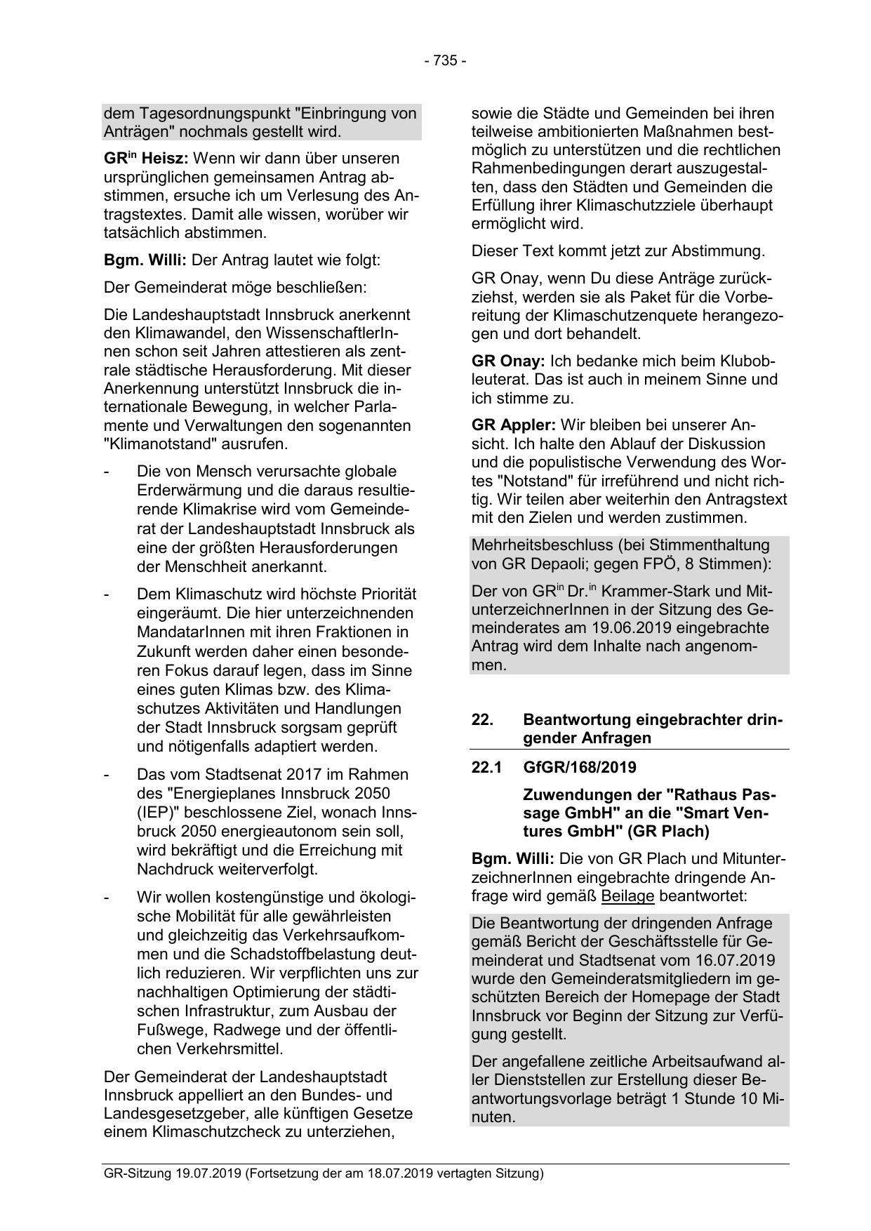 GR-Sitzung 19.07.2019 (Fortsetzung der am 18.07.2019 vertagten Sitzung)