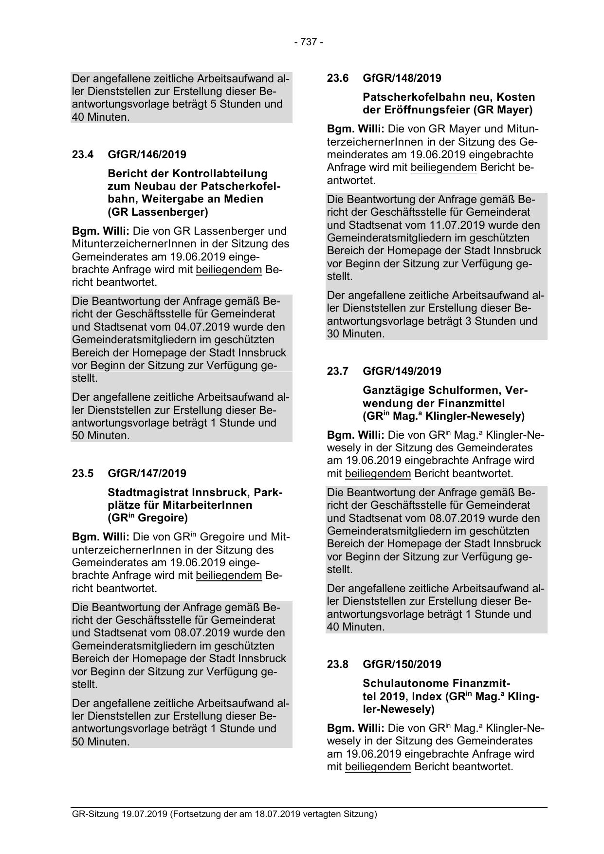 GR-Sitzung 19.07.2019 (Fortsetzung der am 18.07.2019 vertagten Sitzung)
