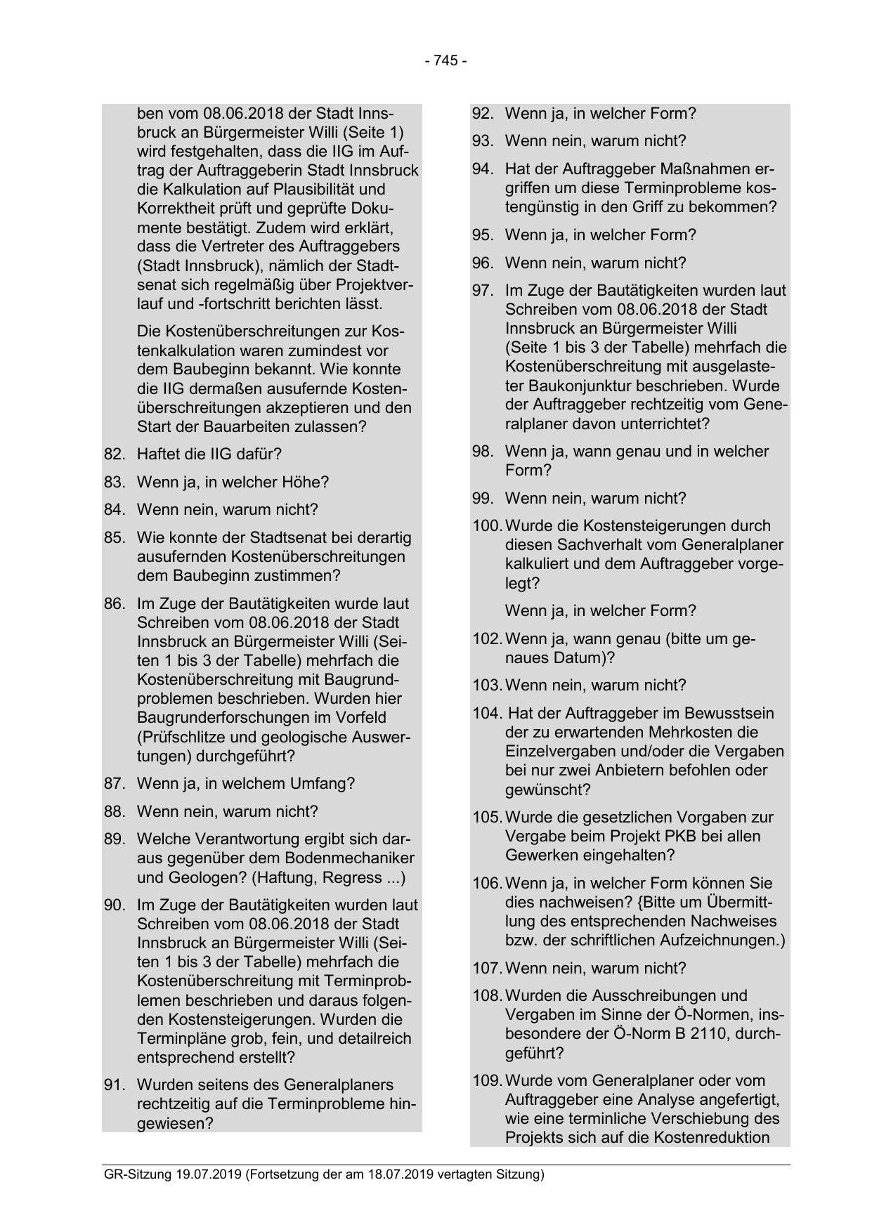 wird festgehalten, dass die IIG im Auftrag der Auftraggeberin Stadt Innsbruck