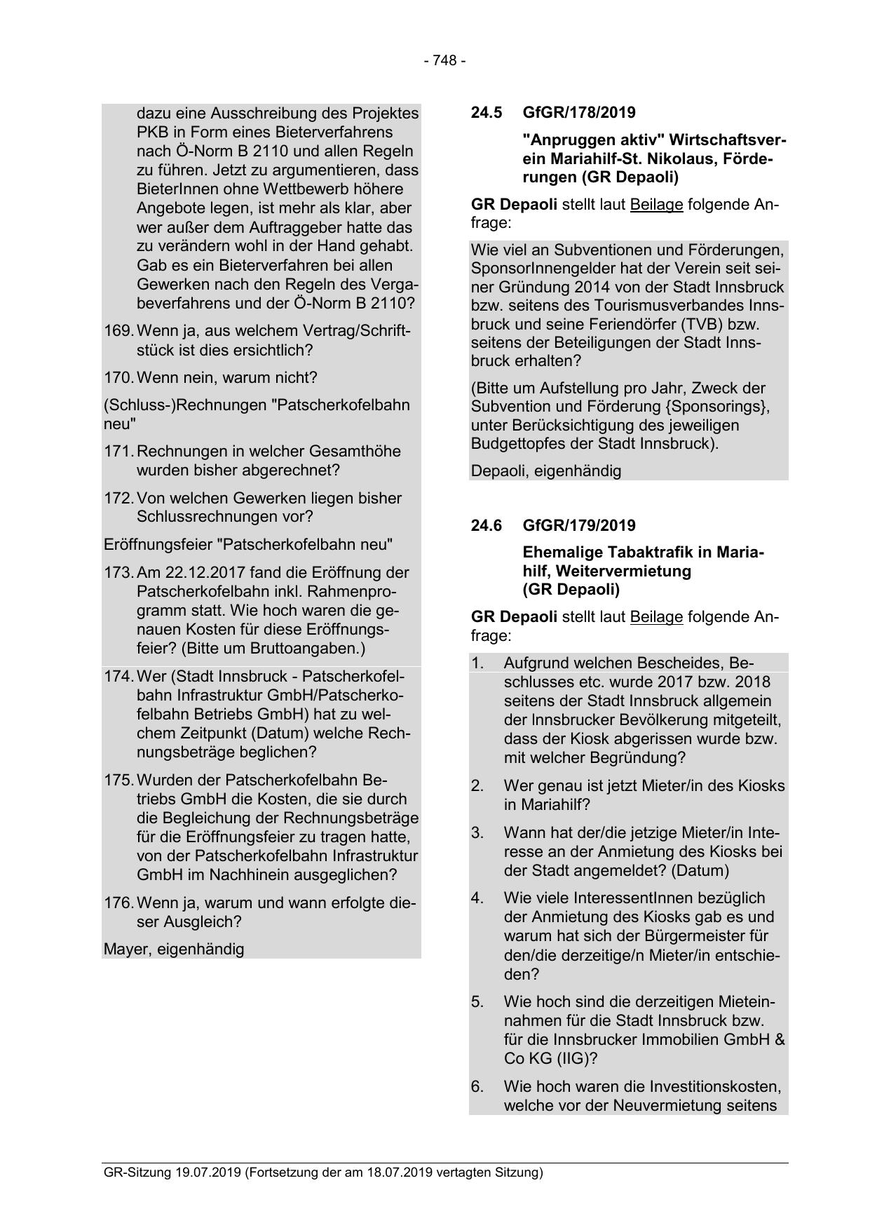 GR Depaoli stellt laut Beilage folgende Anfrage: