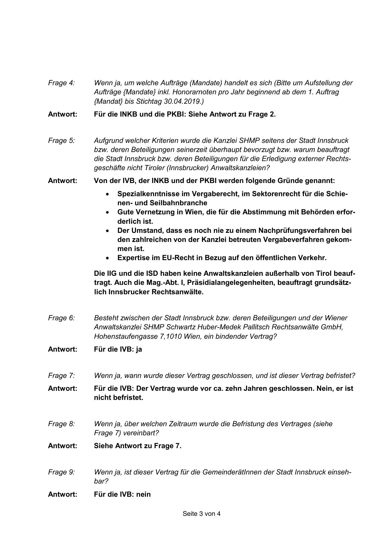 die Stadt Innsbruck bzw. deren Beteiligungen für die Erledigung externer Rechtsgeschäfte nicht Tiroler (Innsbrucker) Anwaltskanzleien?