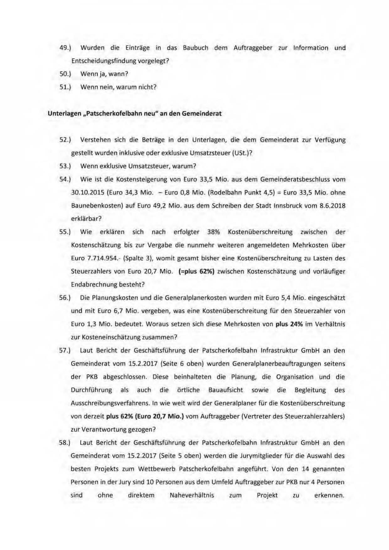Baunebenkosten) auf Euro 49,2 Mio. aus dem Schreiben der Stadt Innsbruck vom 8.6.2018