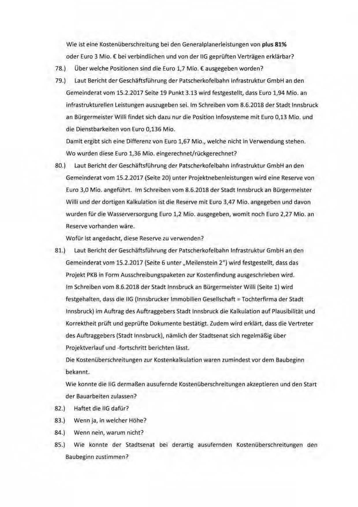 Euro 3,0 Mio. angeführt. Im Schreiben vom 8.6.2018 der Stadt Innsbruck an Bürgermeister