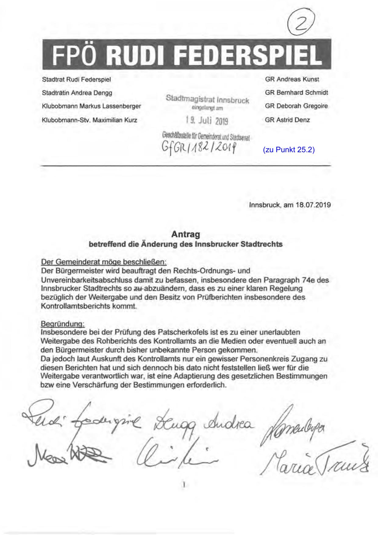 lnnsbrucker Stadtrechts so a,..abzuändem, dass es zu einer klaren Regelung
