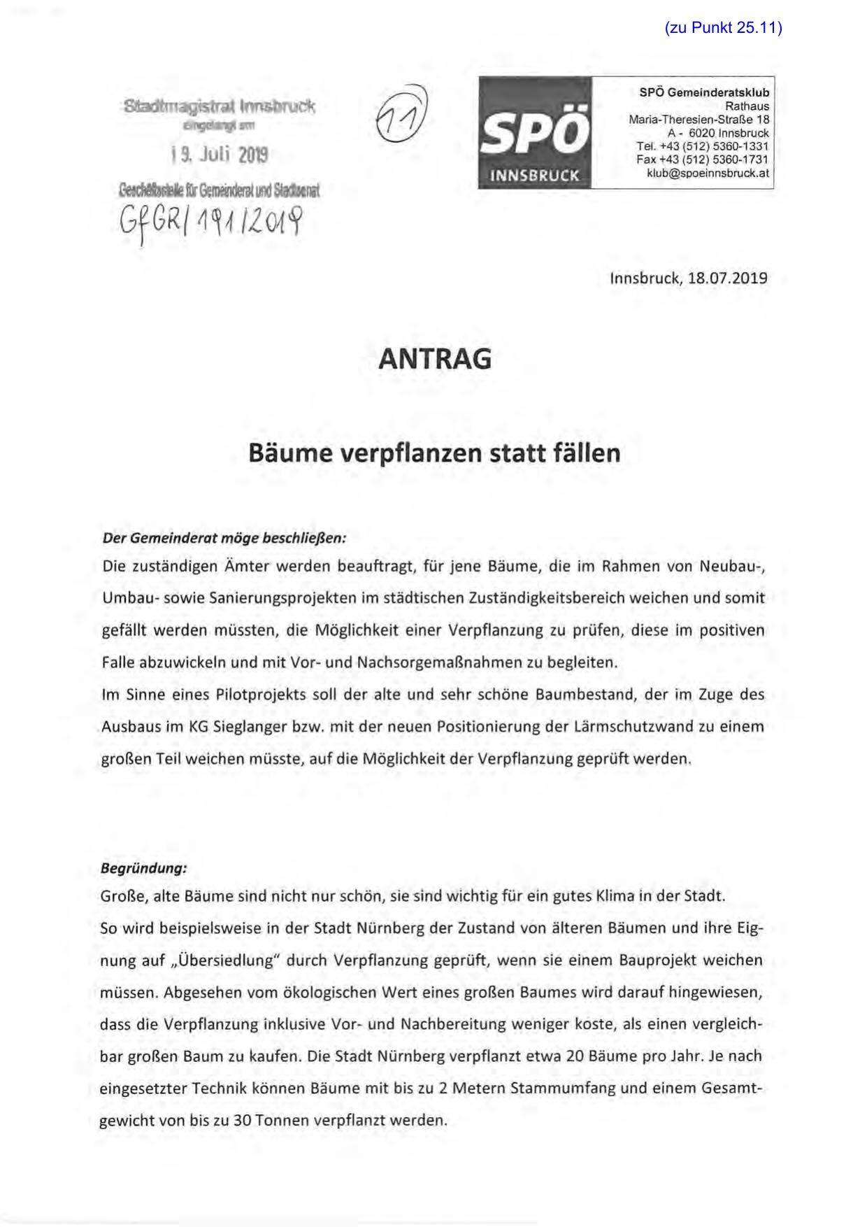 Die zuständigen Ämter werden beauftragt, für jene Bäume, die im Rahmen von Neubau-,