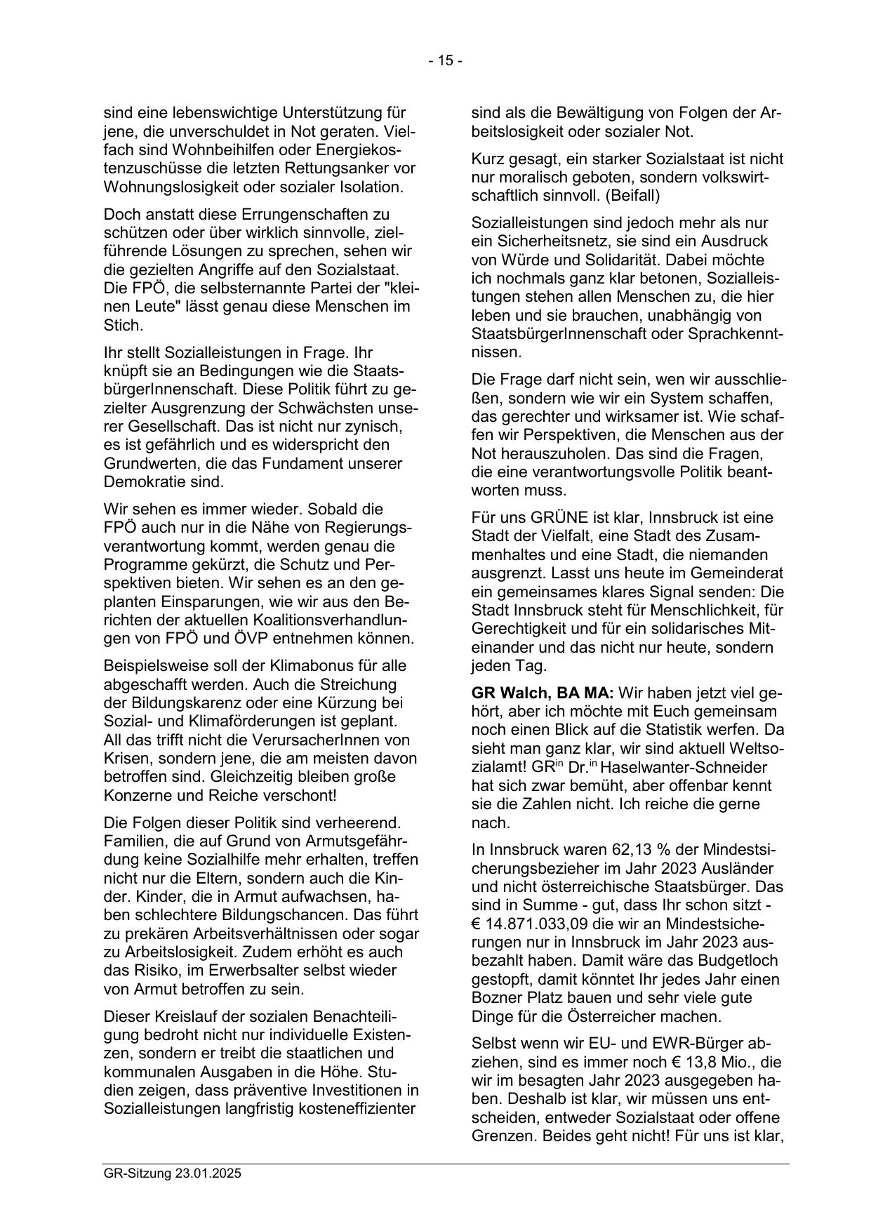 GR Walch, BA MA: Wir haben jetzt viel gehört, aber ich möchte mit Euch gemeinsam
