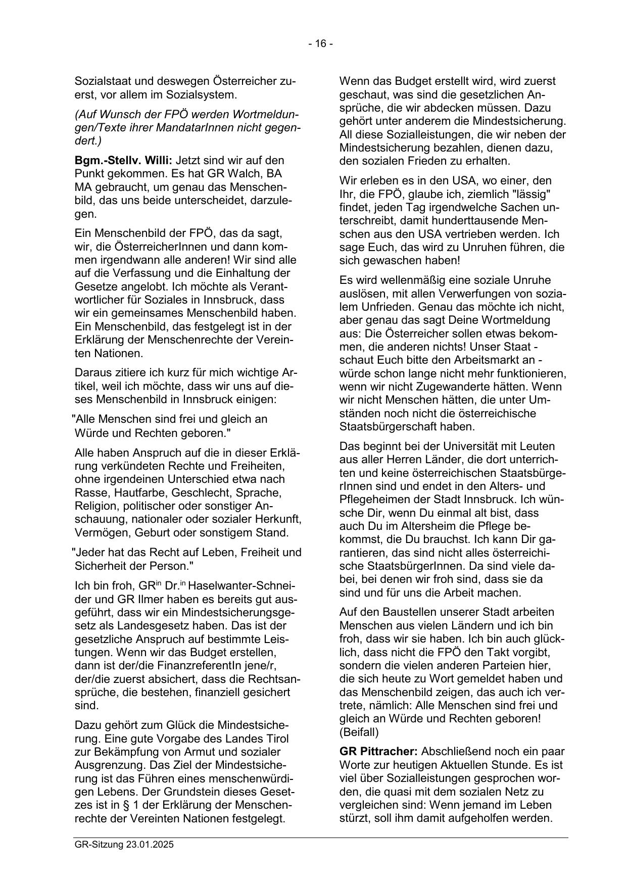 Daraus zitiere ich kurz für mich wichtige Artikel, weil ich möchte, dass wir uns auf dieses Menschenbild in Innsbruck einigen: