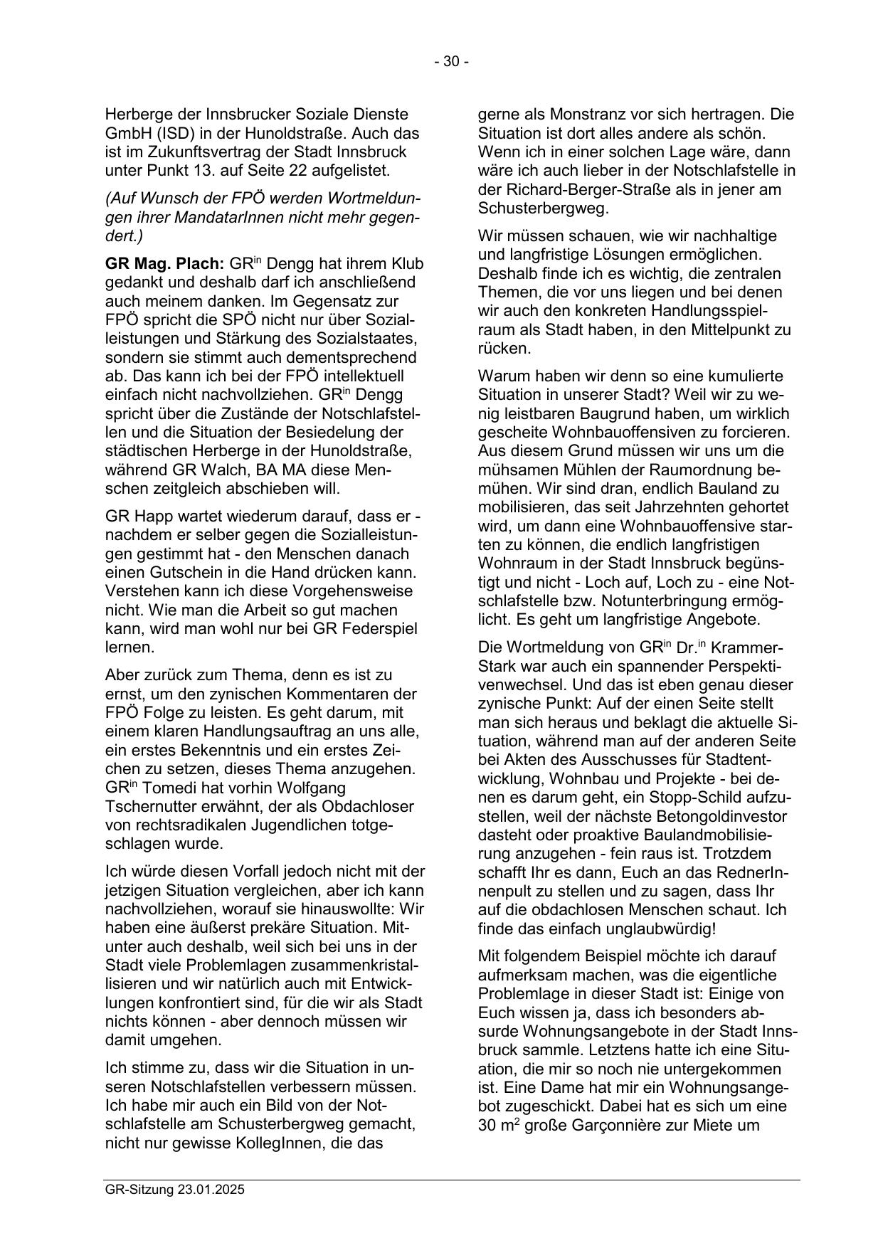 Wohnraum in der Stadt Innsbruck begünstigt und nicht - Loch auf, Loch zu - eine Notschlafstelle bzw. Notunterbringung ermöglicht. Es geht um langfristige Angebote.