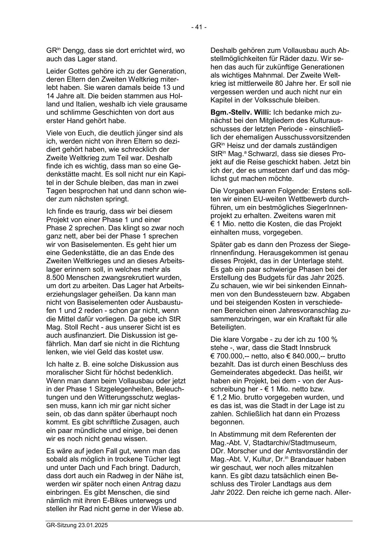 Bgm.-Stellv. Willi: Ich bedanke mich zunächst bei den Mitgliedern des Kulturausschusses der letzten Periode - einschließlich der ehemaligen Ausschussvorsitzenden