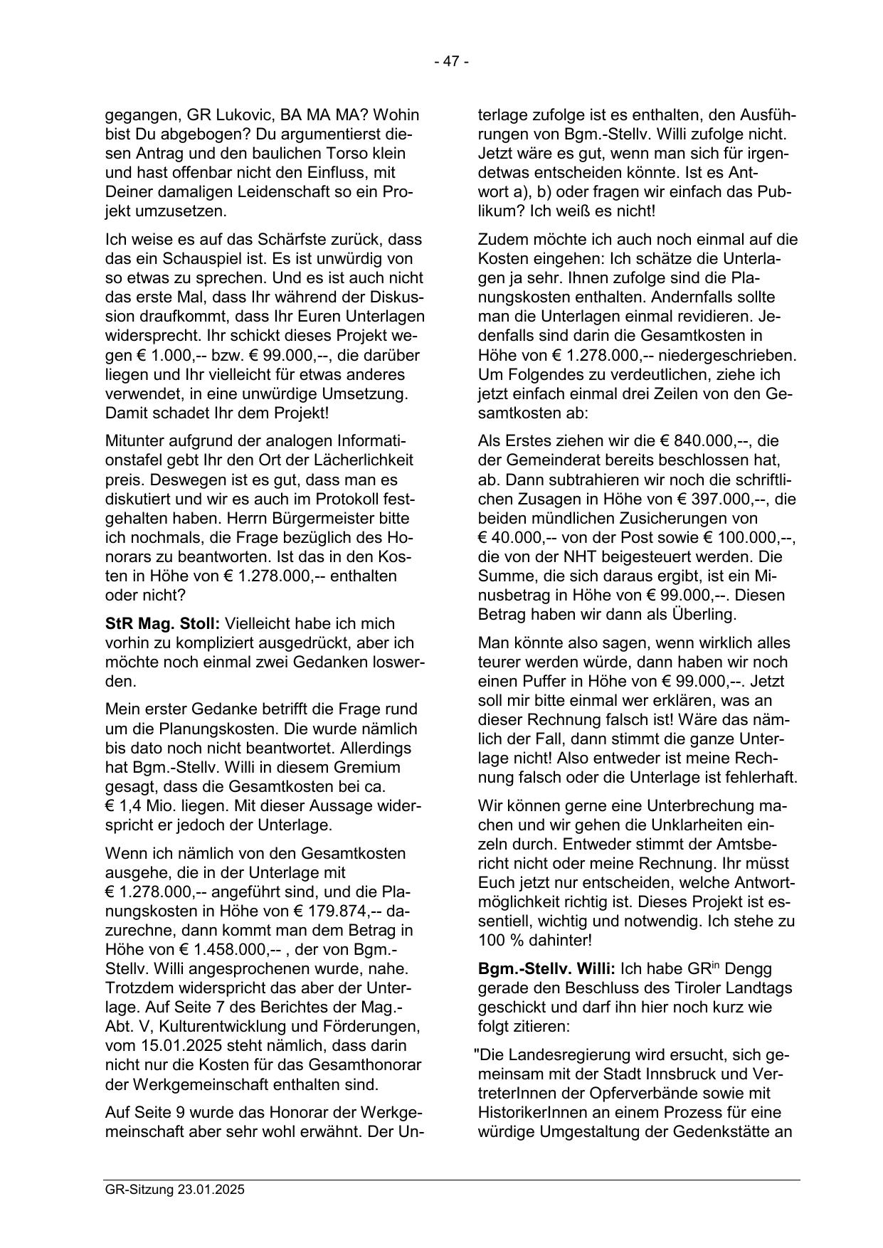 Bgm.-Stellv. Willi: Ich habe GRin Dengg