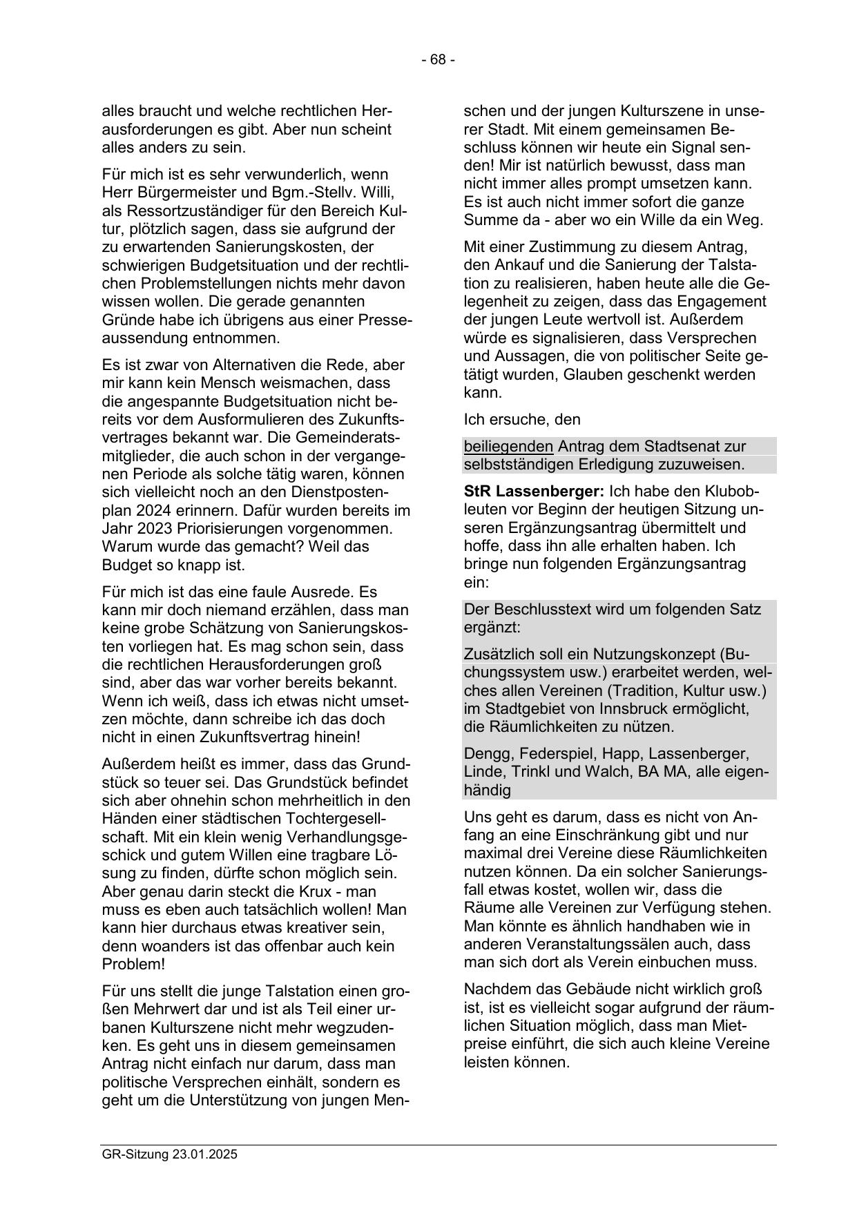 StR Lassenberger: Ich habe den Klubobleuten vor Beginn der heutigen Sitzung unseren Ergänzungsantrag übermittelt und