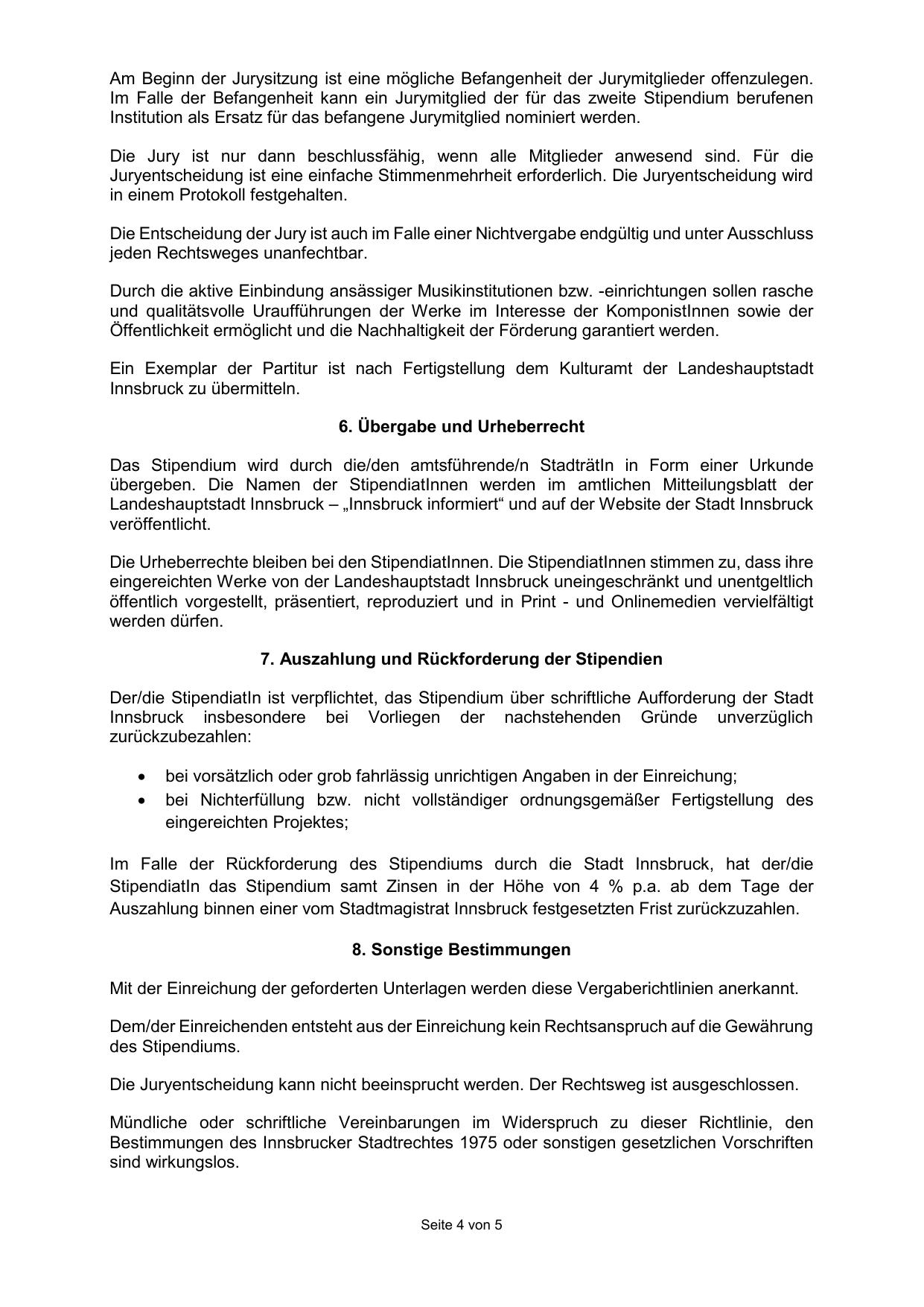 Der/die StipendiatIn ist verpflichtet, das Stipendium über schriftliche Aufforderung der Stadt