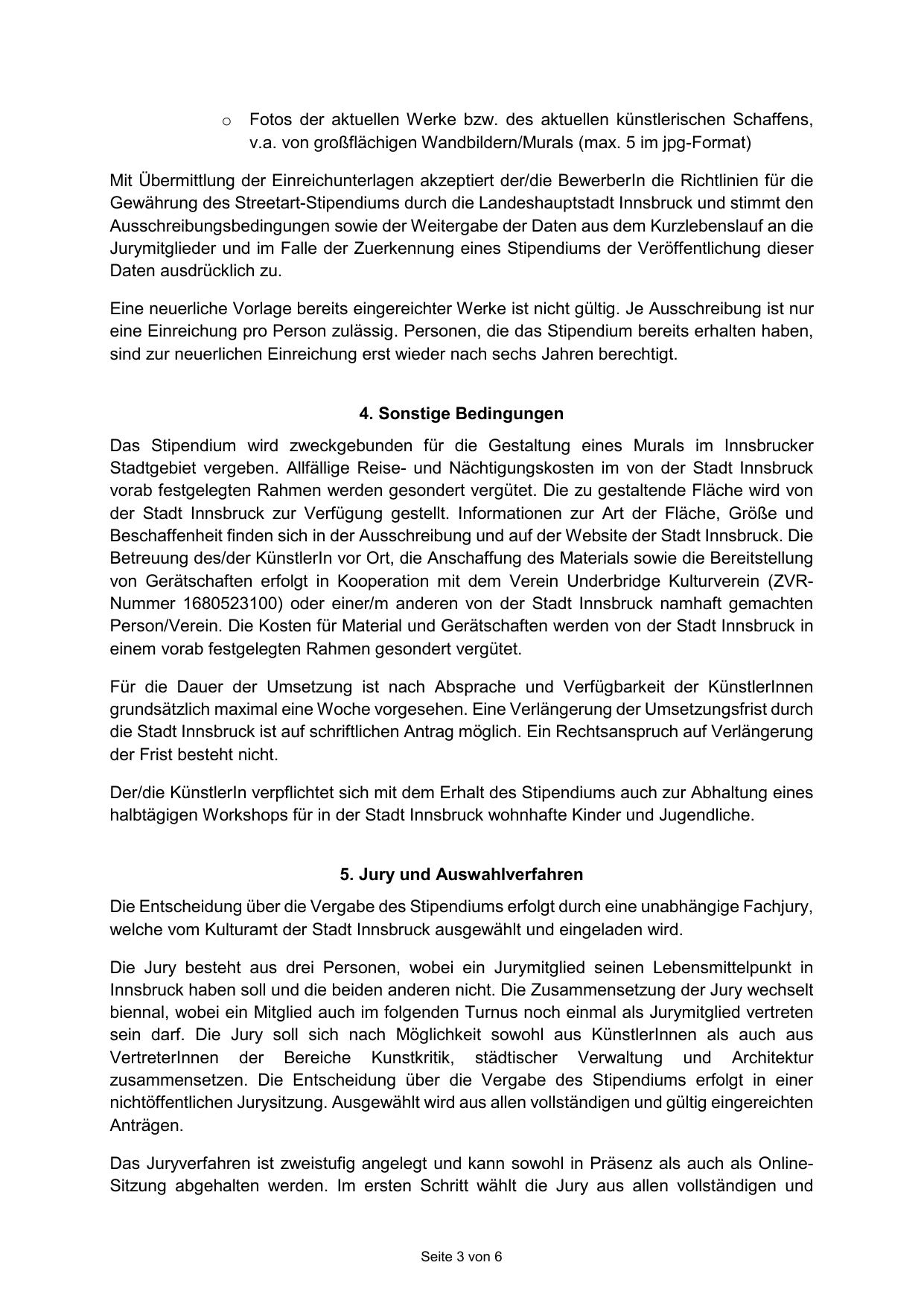 Beschaffenheit finden sich in der Ausschreibung und auf der Website der Stadt Innsbruck. Die