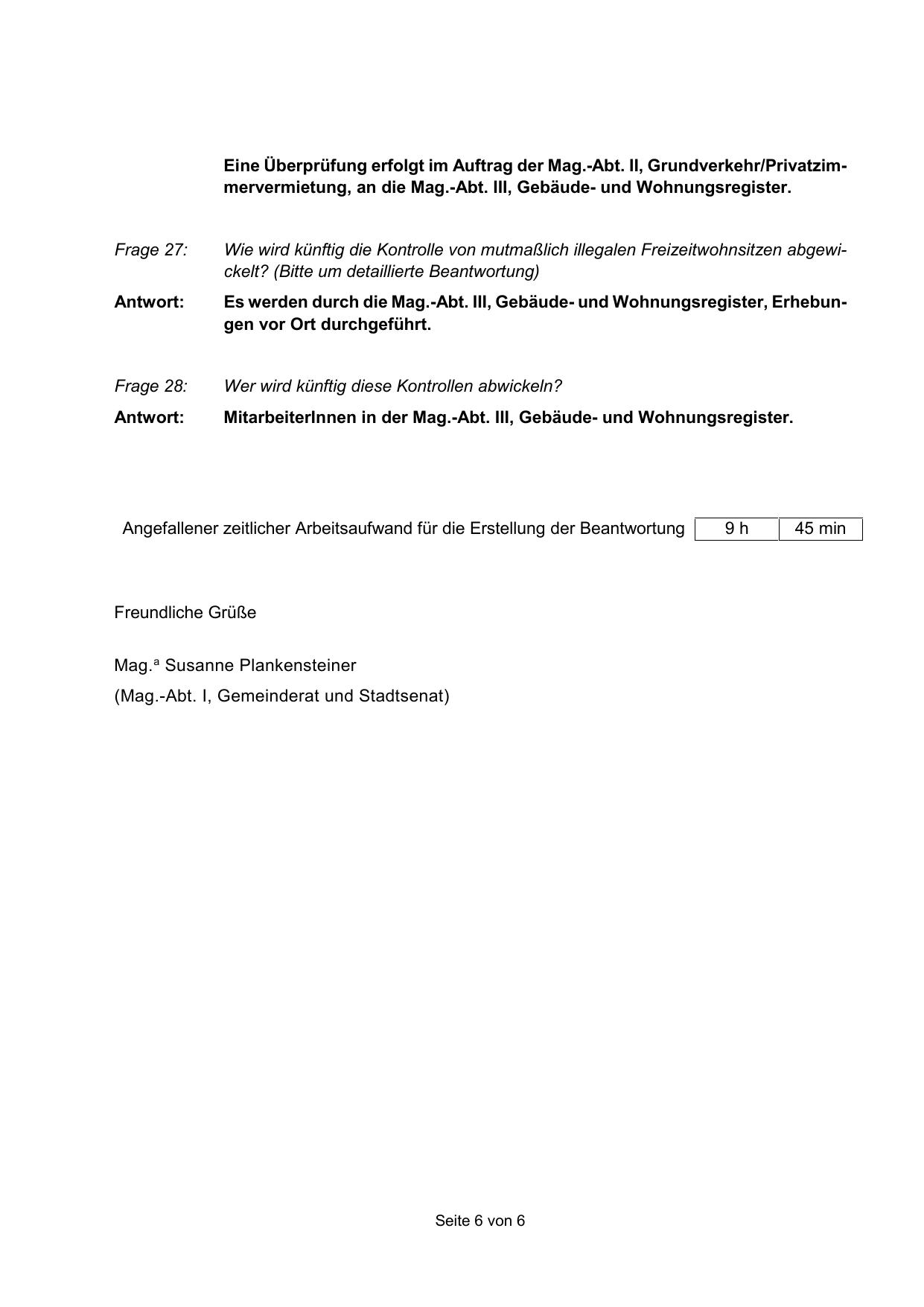 Eine Überprüfung erfolgt im Auftrag der Mag.-Abt. II, Grundverkehr/Privatzimmervermietung, an die Mag.-Abt. III, Gebäude- und Wohnungsregister.