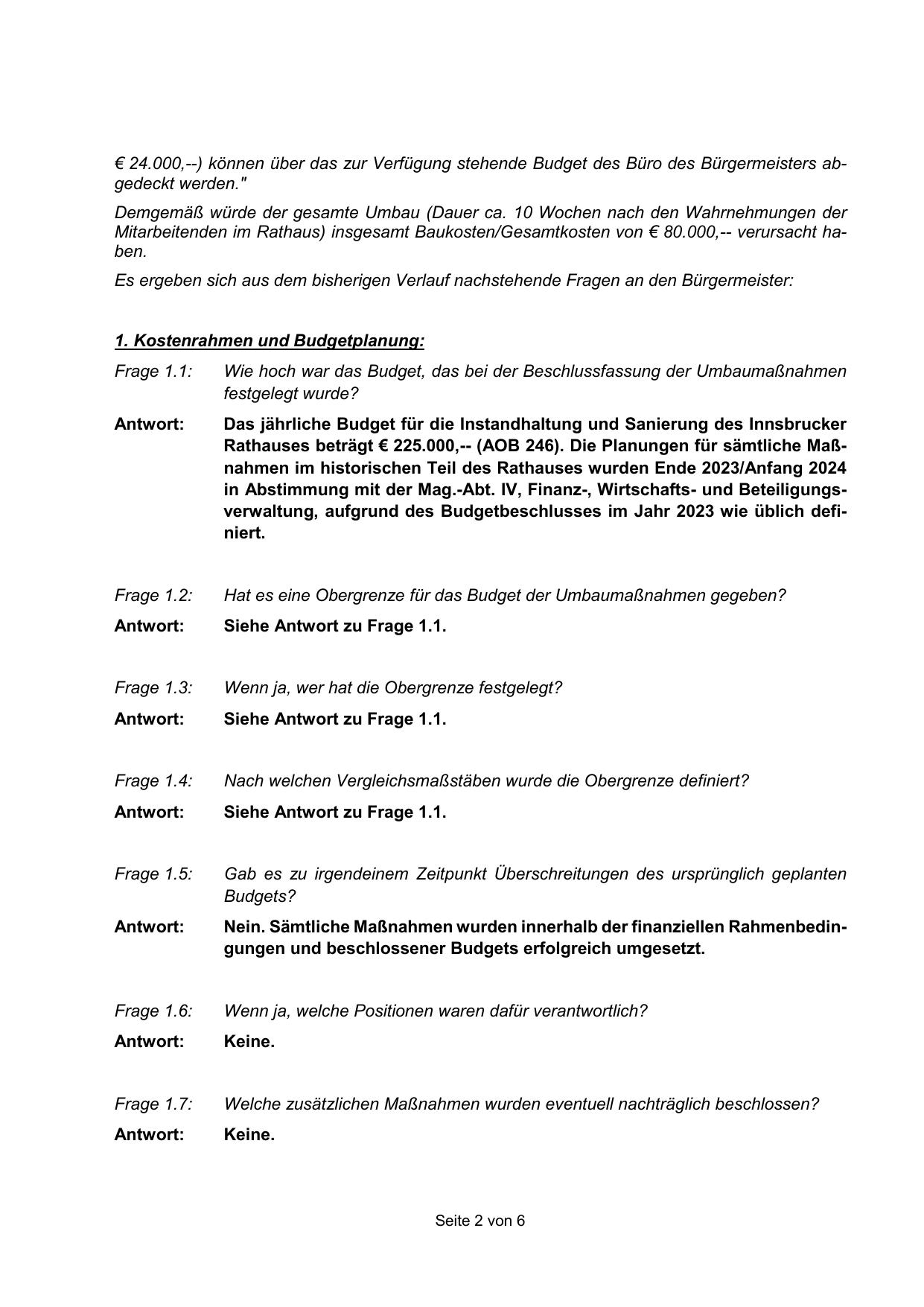 Rathauses beträgt € 225.000,-- (AOB 246). Die Planungen für sämtliche Maßnahmen im historischen Teil des Rathauses wurden Ende 2023/Anfang 2024