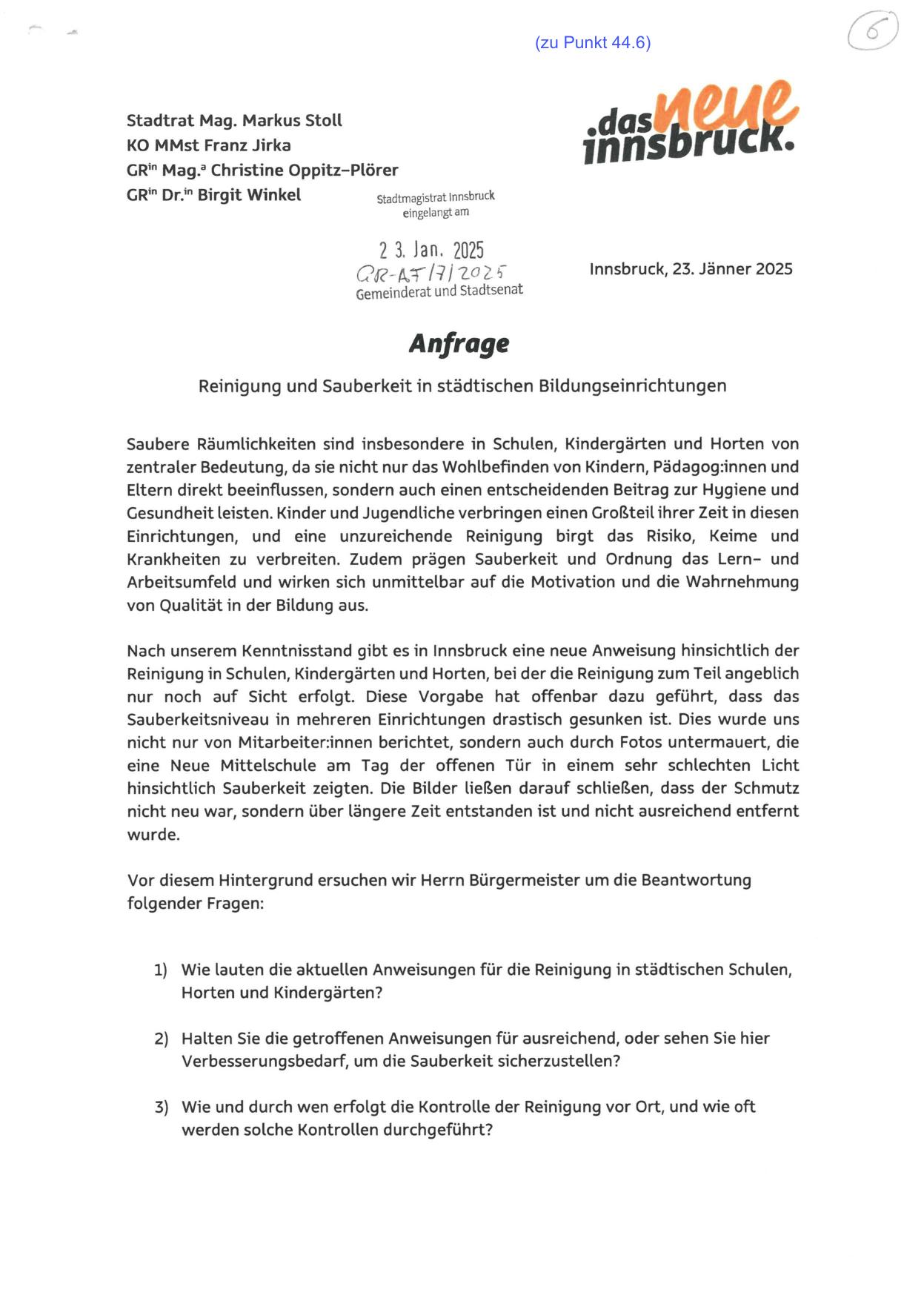 Vor diesem Hintergrund ersuchen wir Herrn Bürgermeister um die Beantwortung
