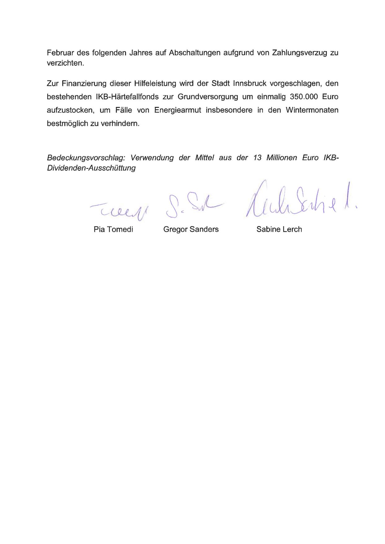 Zur Finanzierung dieser Hilfeleistung wird der Stadt Innsbruck vorgeschlagen, den