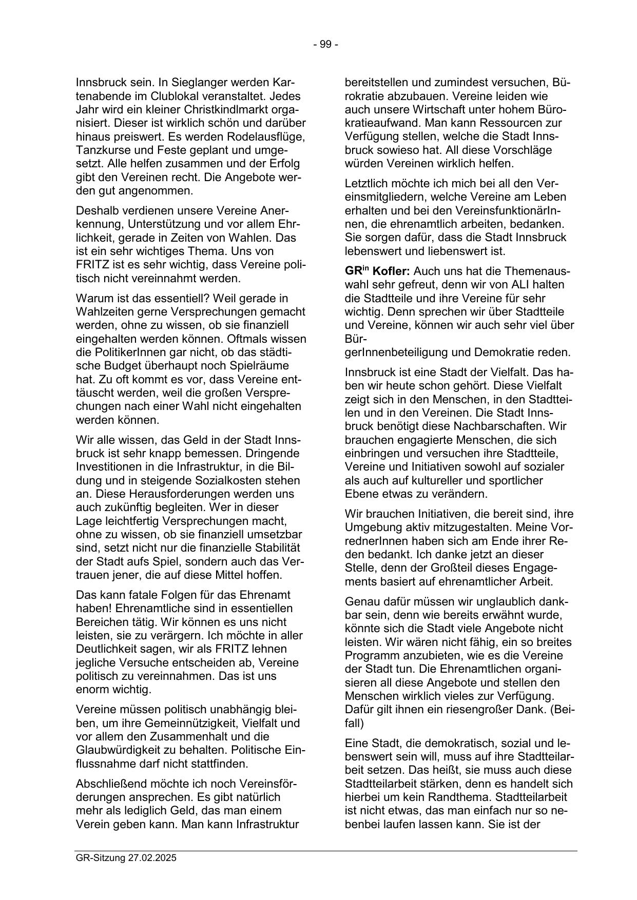 GRin Kofler: Auch uns hat die Themenauswahl sehr gefreut, denn wir von ALI halten