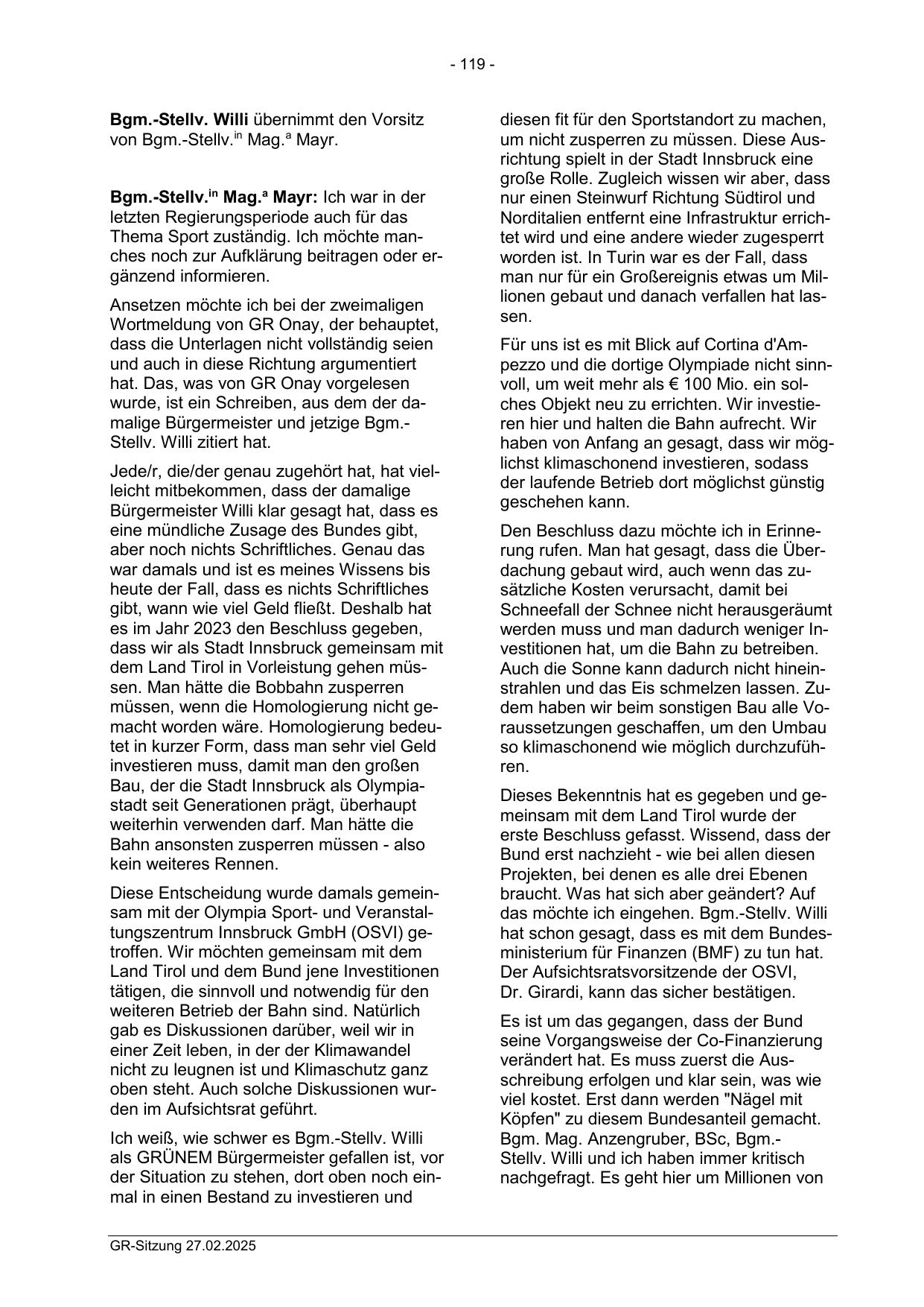 Diese Entscheidung wurde damals gemeinsam mit der Olympia Sport- und Veranstaltungszentrum Innsbruck GmbH (OSVI) getroffen. Wir möchten gemeinsam mit dem