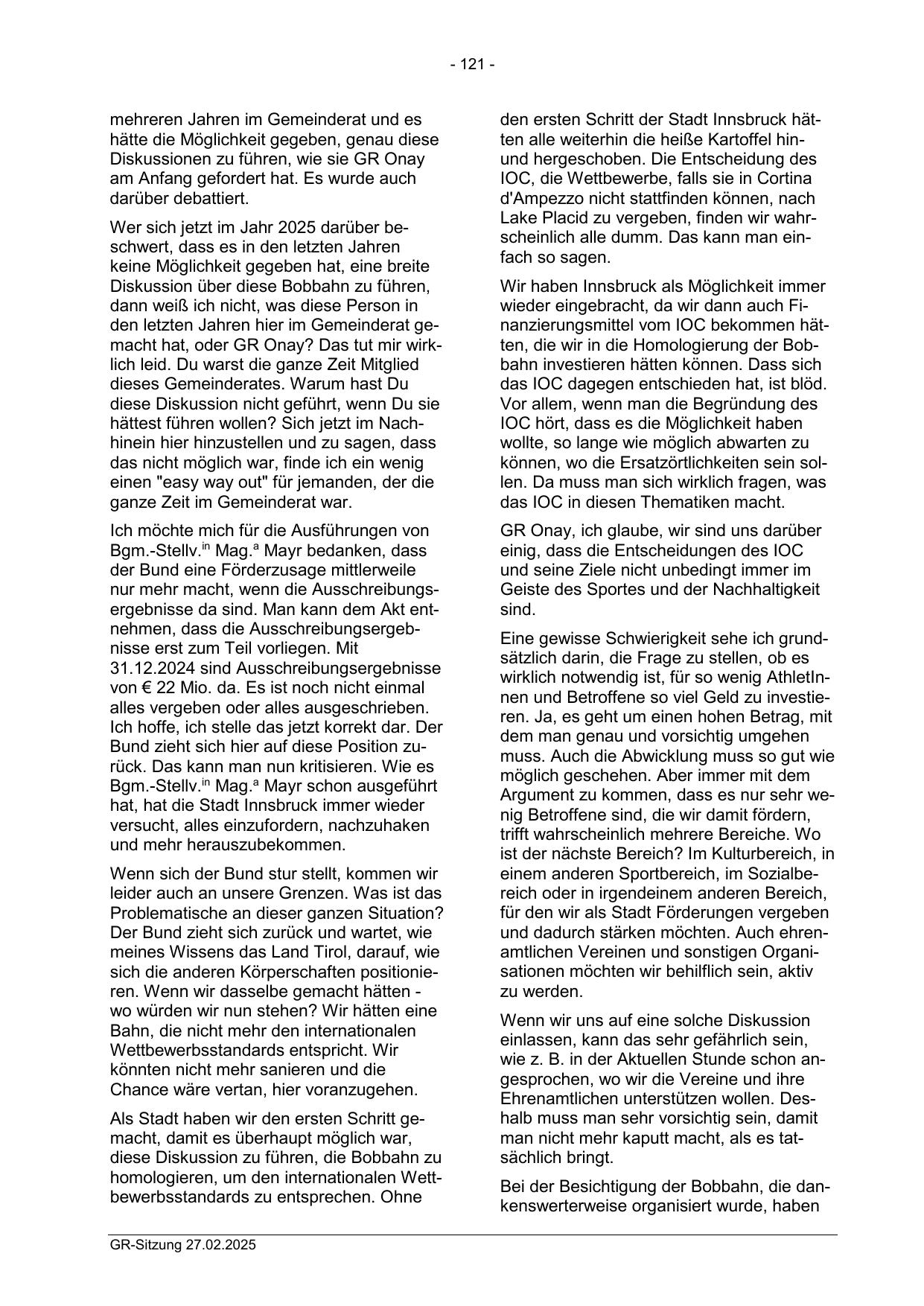 wieder eingebracht, da wir dann auch Finanzierungsmittel vom IOC bekommen hätten, die wir in die Homologierung der Bobbahn investieren hätten können. Dass sich