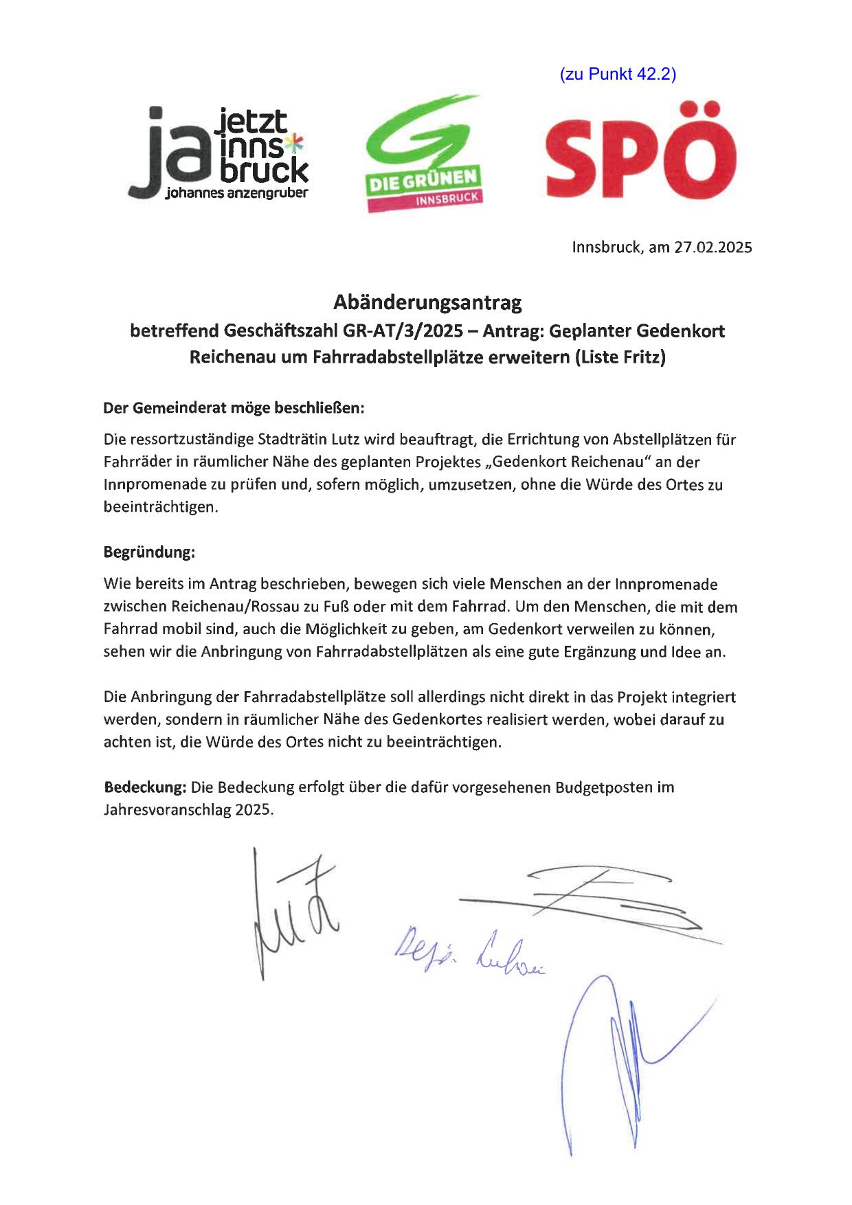 betreffend Geschäftszahl GR-AT/3/2025 - Antrag: Geplanter Gedenkort