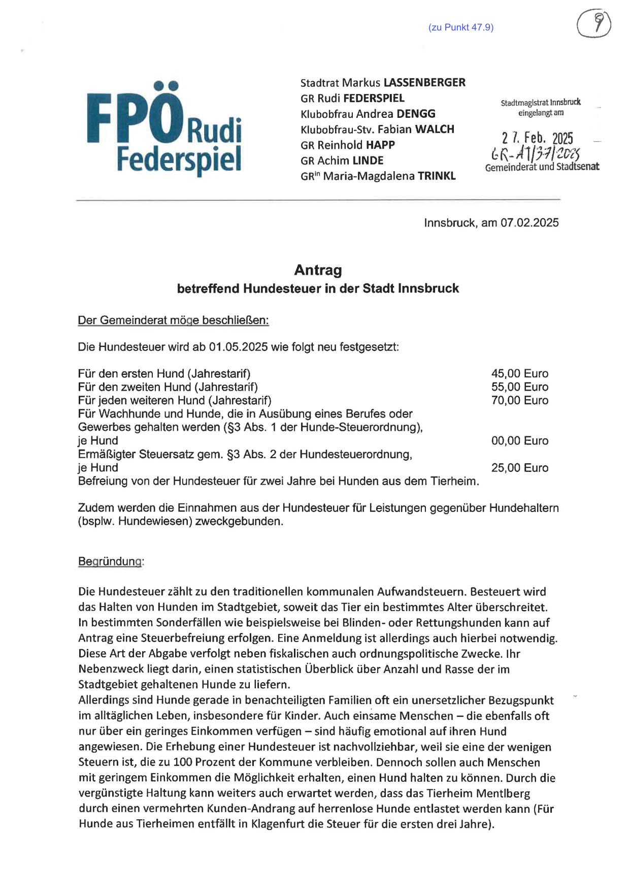 Die Hundesteuer wird ab 01.05.2025 wie folgt neu festgesetzt: