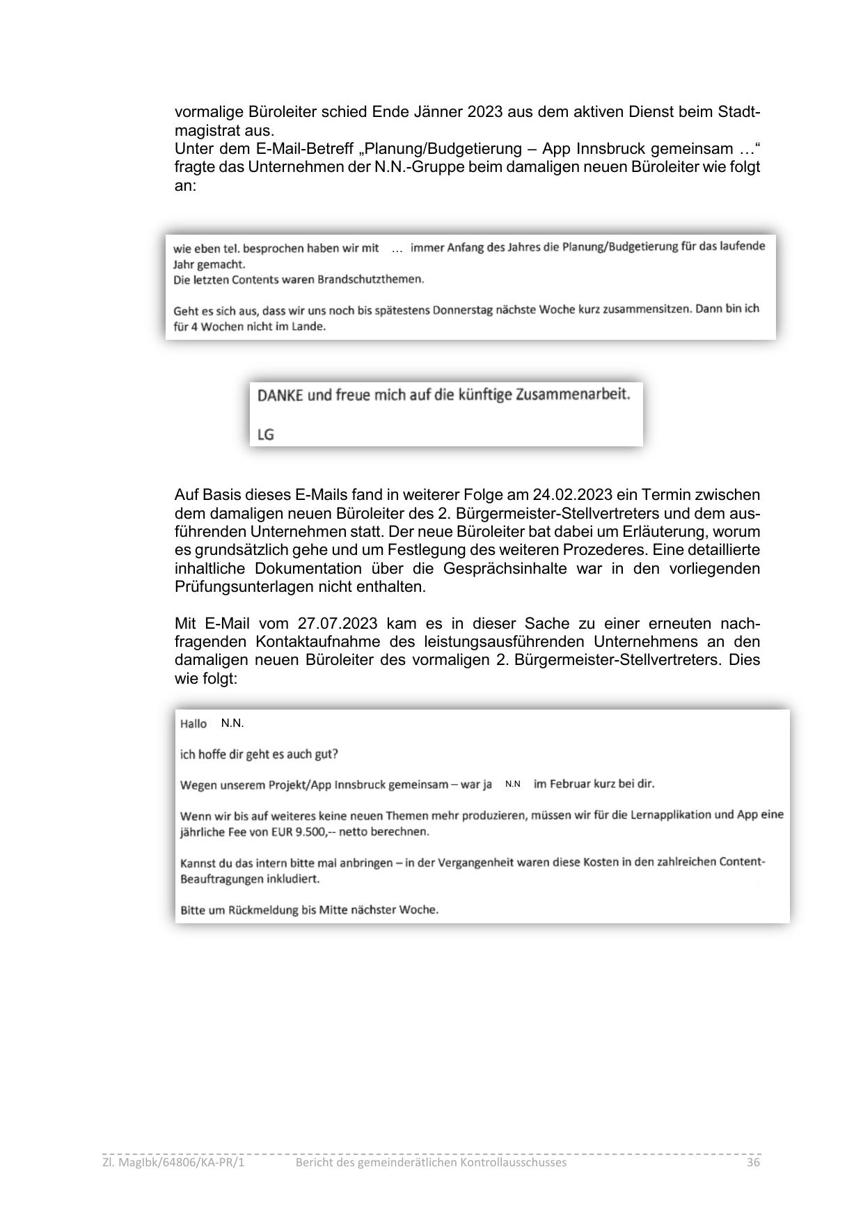 Unter dem E-Mail-Betreff „Planung/Budgetierung – App Innsbruck gemeinsam …“