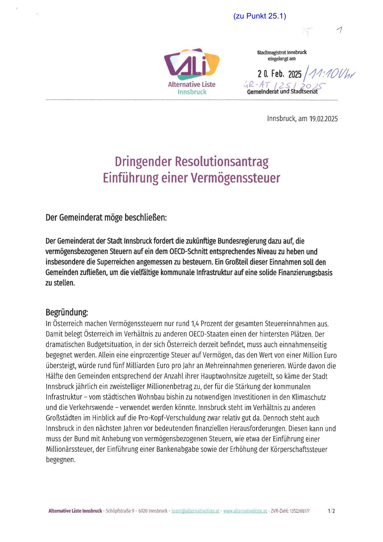 Der Gemeinderat der Stadt Innsbruck fordert die zukünftige Bundesregierung dazu auf, die