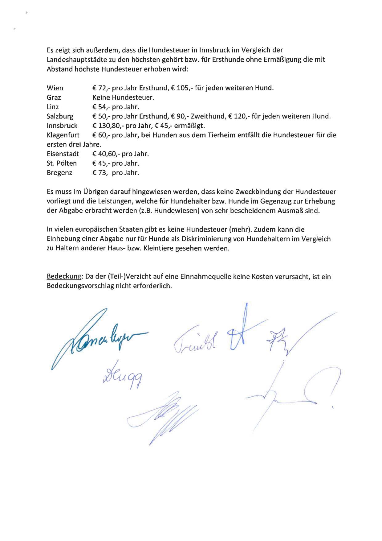 Es zeigt sich außerdem, dass die Hundesteuer in Innsbruck im Vergleich der