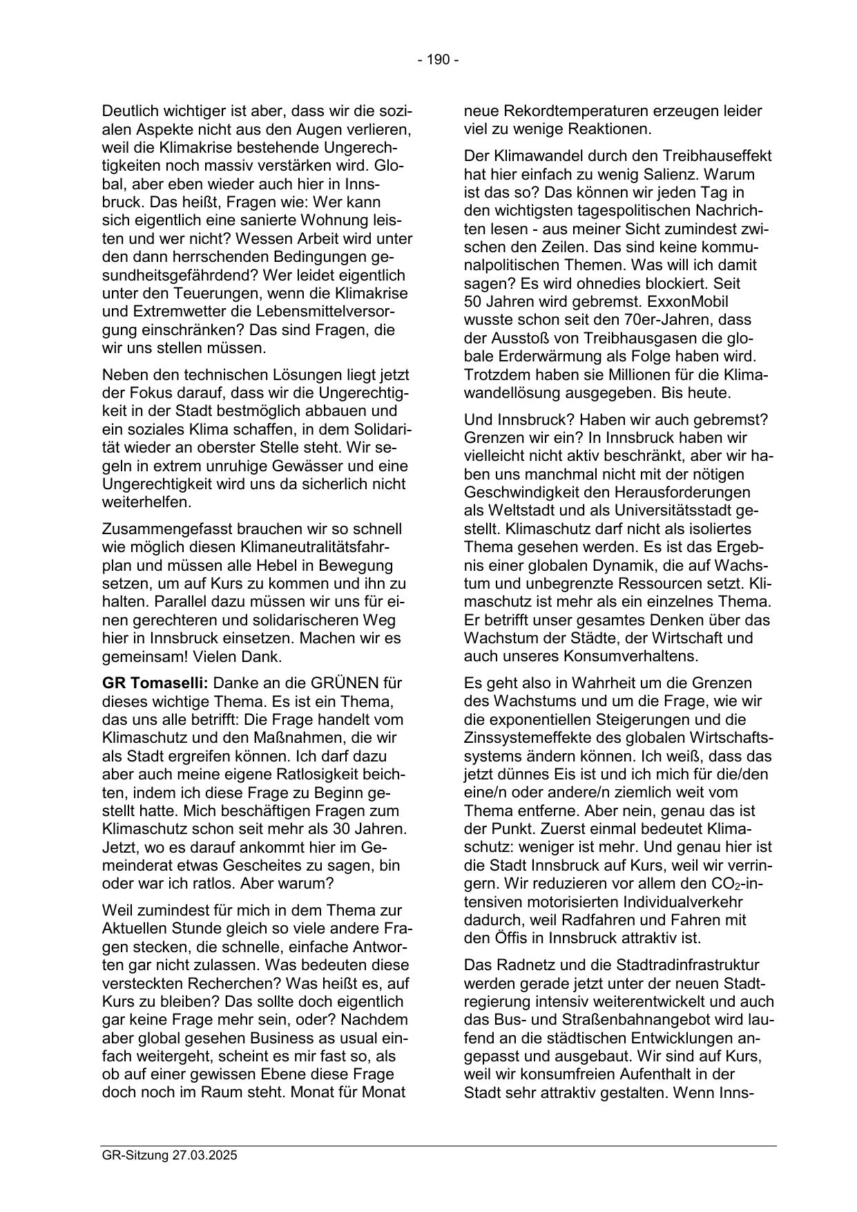 weil die Klimakrise bestehende Ungerechtigkeiten noch massiv verstärken wird. Global, aber eben wieder auch hier in Innsbruck. Das heißt, Fragen wie: Wer kann