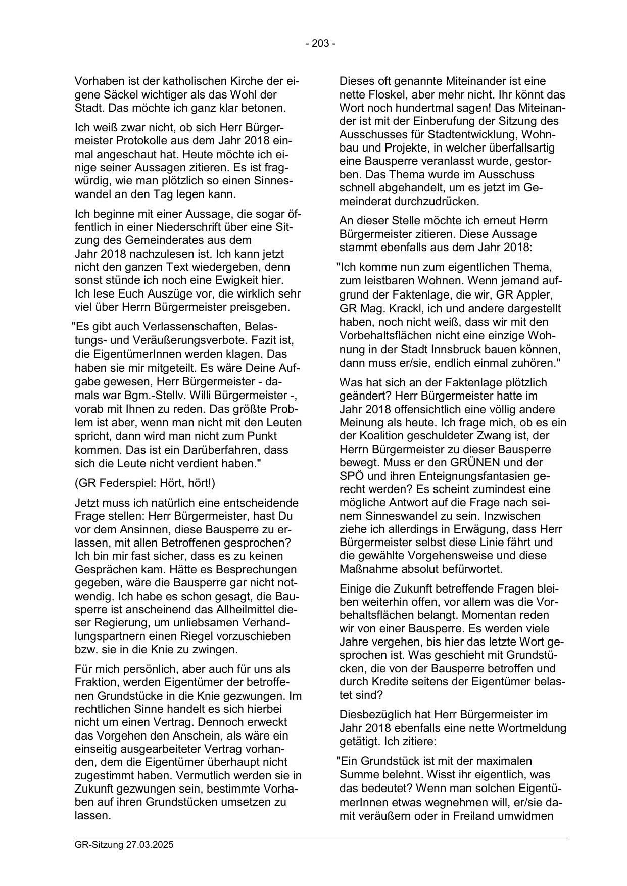 Ich beginne mit einer Aussage, die sogar öffentlich in einer Niederschrift über eine Sitzung des Gemeinderates aus dem