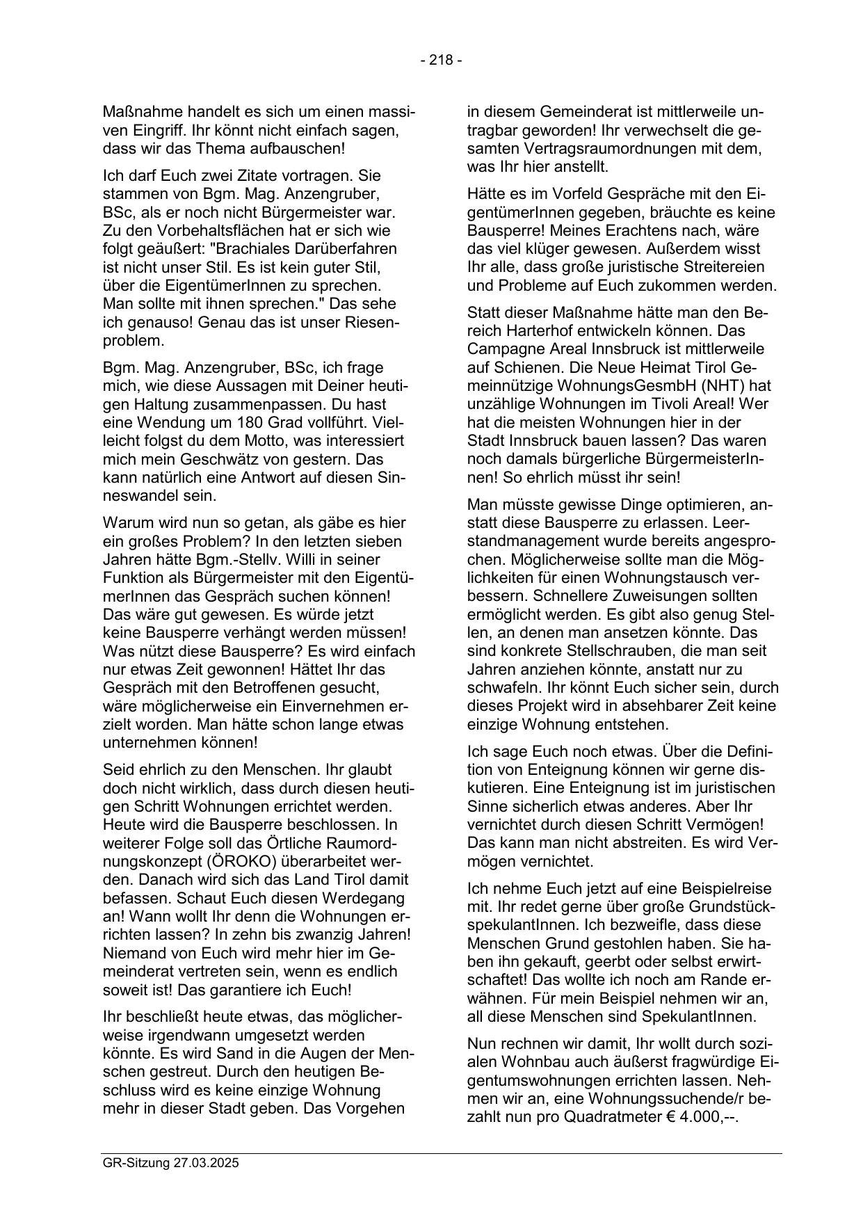 in diesem Gemeinderat ist mittlerweile untragbar geworden! Ihr verwechselt die gesamten Vertragsraumordnungen mit dem,
