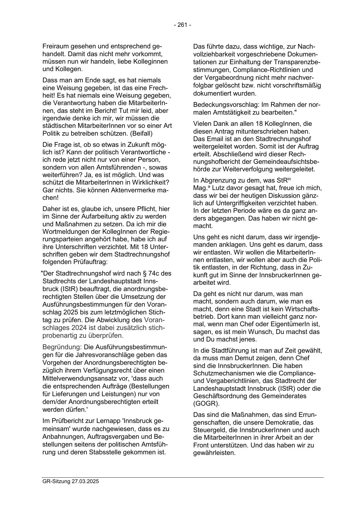 ihre Unterschriften verzichtet. Mit 18 Unterschriften geben wir dem Stadtrechnungshof