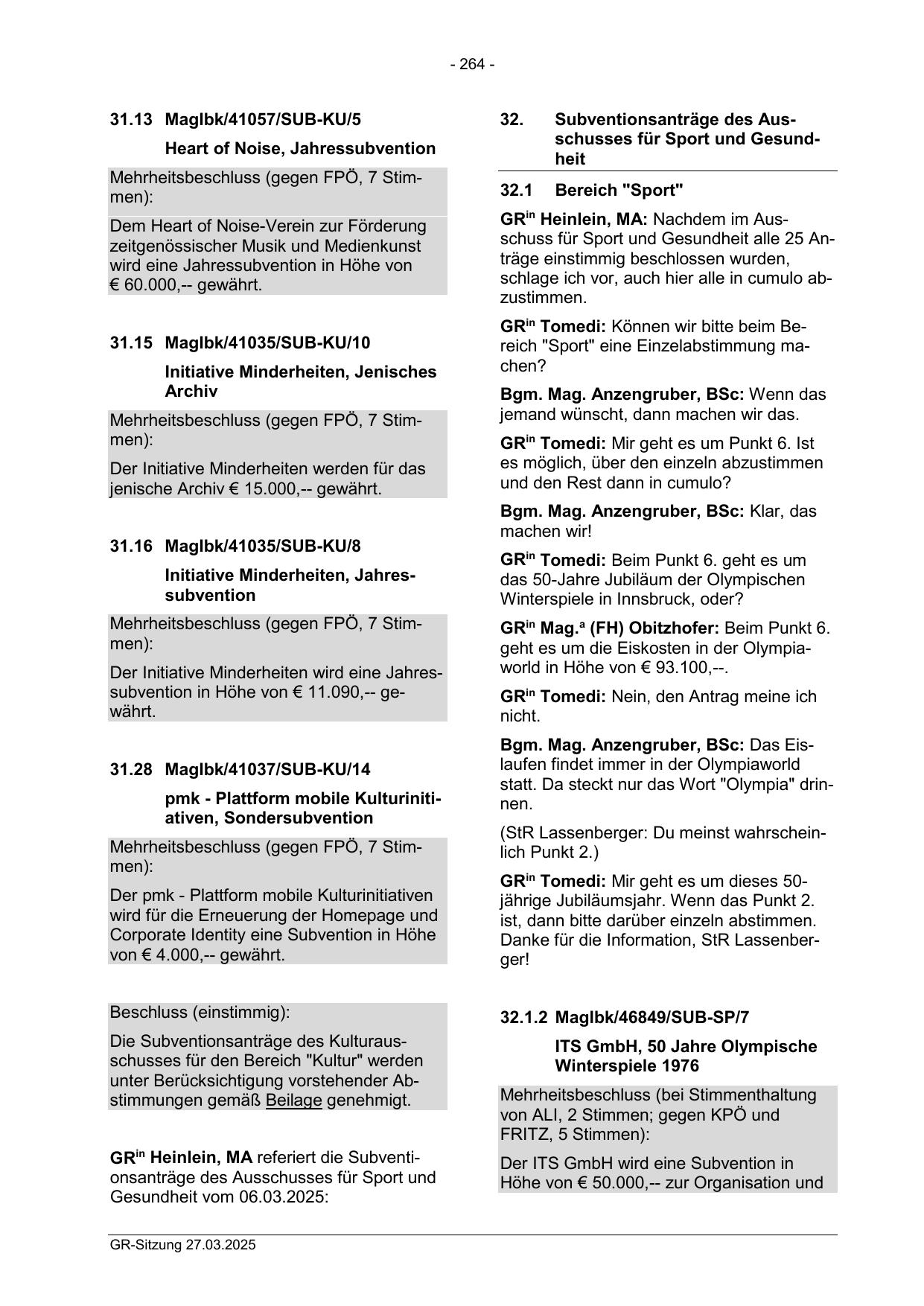 GRin Heinlein, MA: Nachdem im Ausschuss für Sport und Gesundheit alle 25 Anträge einstimmig beschlossen wurden,