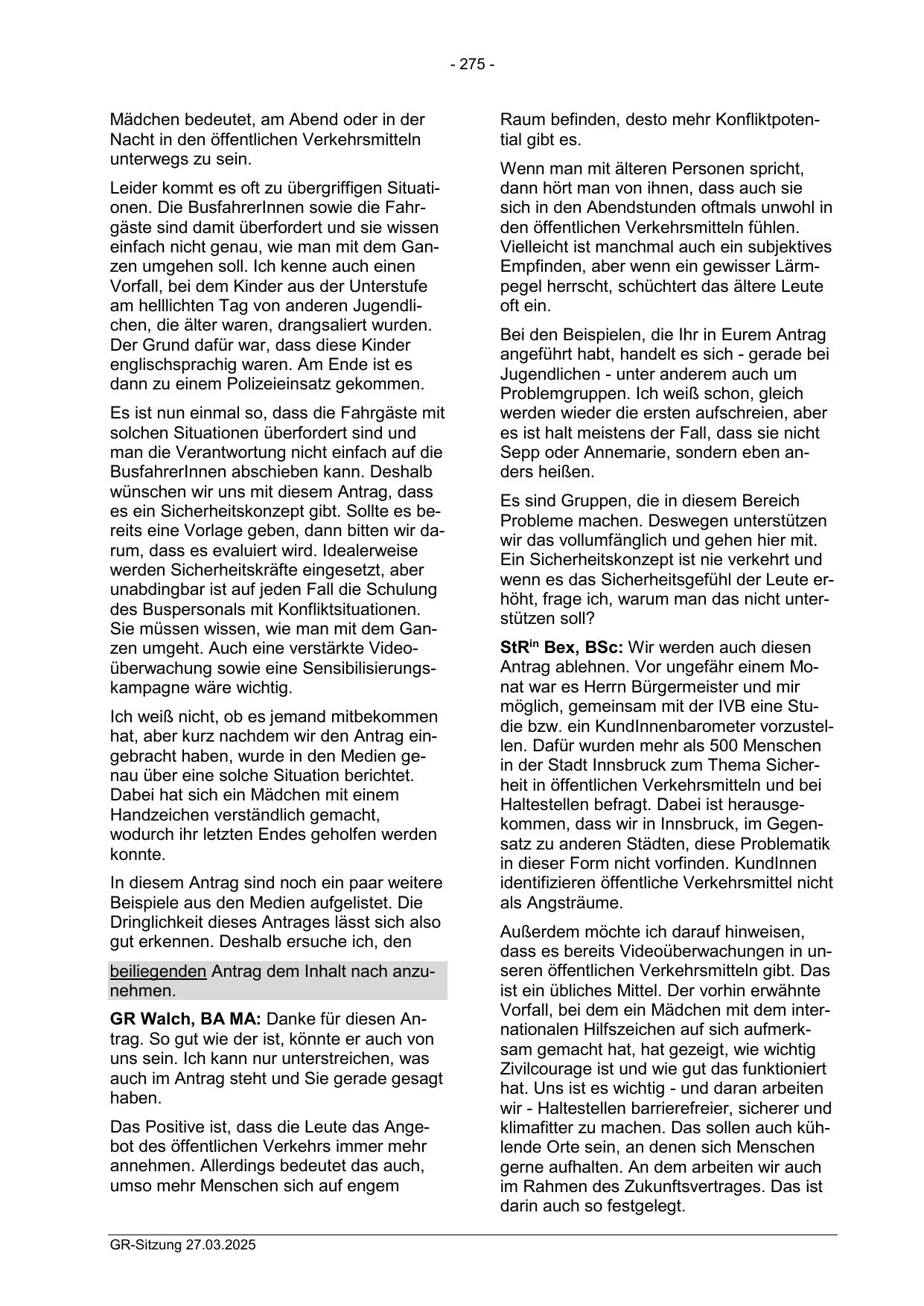 in der Stadt Innsbruck zum Thema Sicherheit in öffentlichen Verkehrsmitteln und bei