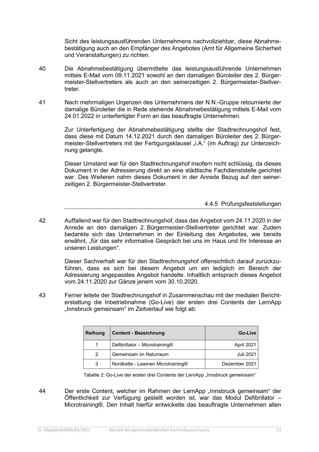 Ferner leitete der Stadtrechnungshof in Zusammenschau mit der medialen Berichterstattung die Inbetriebnahme (Go-Live) der ersten drei Contents der LernApp