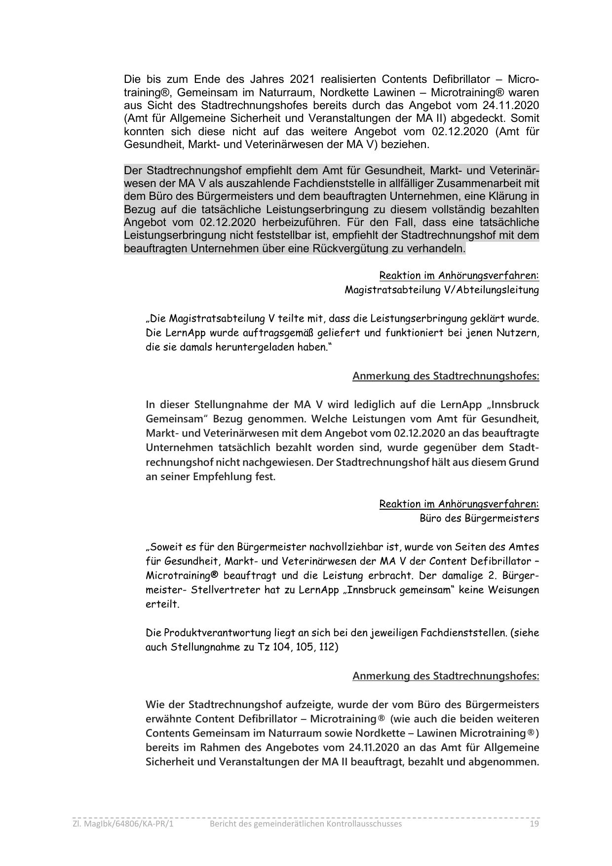 Microtraining® beauftragt und die Leistung erbracht. Der damalige 2. Bürgermeister- Stellvertreter hat zu LernApp „Innsbruck gemeinsam“ keine Weisungen
