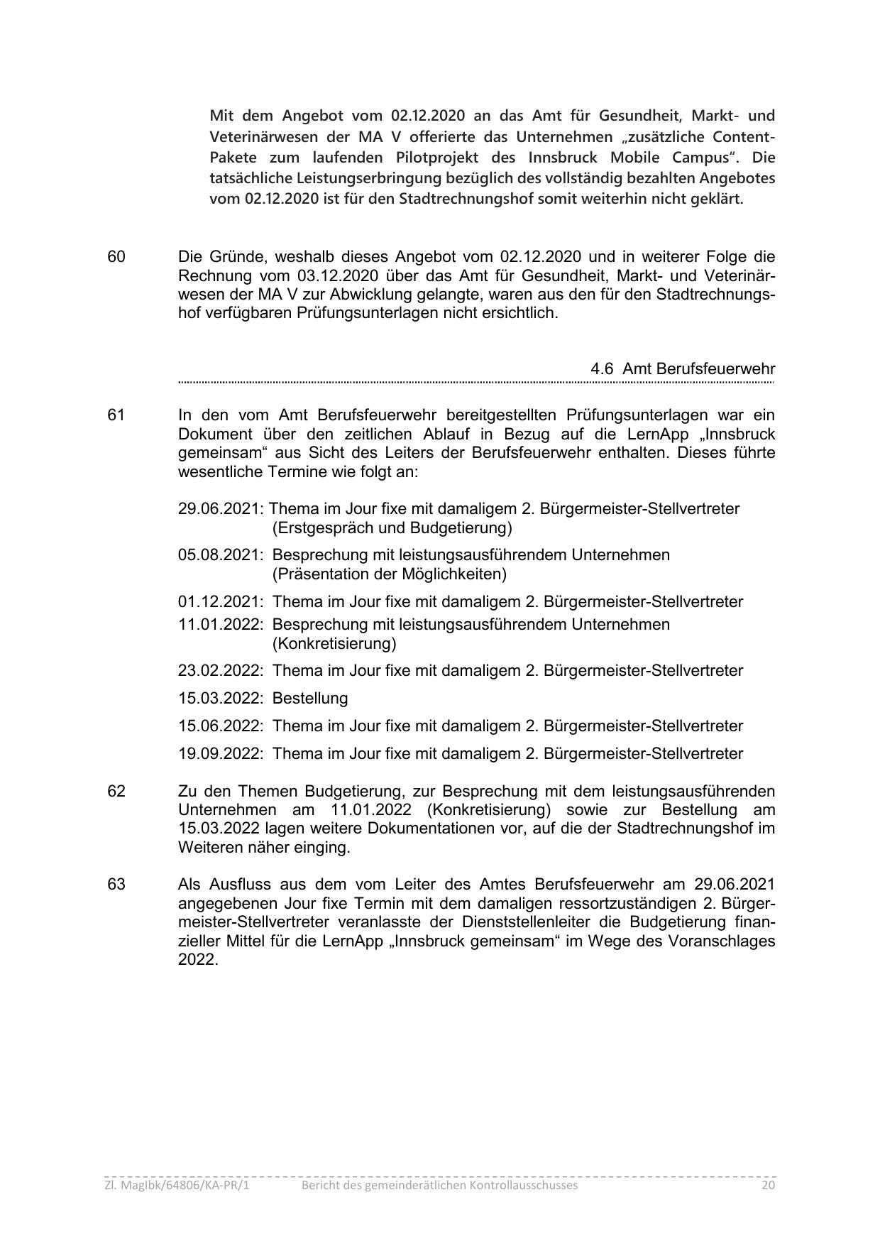 angegebenen Jour fixe Termin mit dem damaligen ressortzuständigen 2. Bürgermeister-Stellvertreter veranlasste der Dienststellenleiter die Budgetierung finanzieller Mittel für die LernApp „Innsbruck gemeinsam“ im Wege des Voranschlages