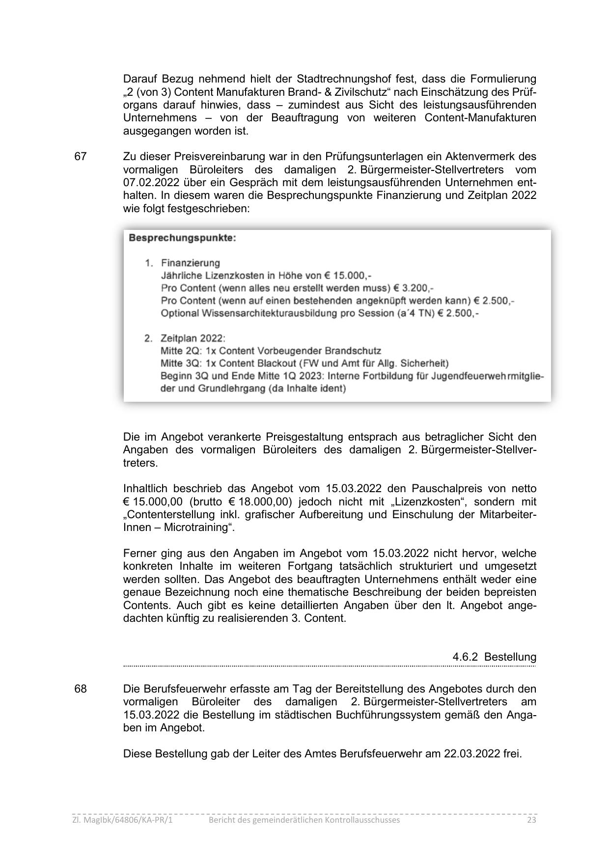 07.02.2022 über ein Gespräch mit dem leistungsausführenden Unternehmen enthalten. In diesem waren die Besprechungspunkte Finanzierung und Zeitplan 2022