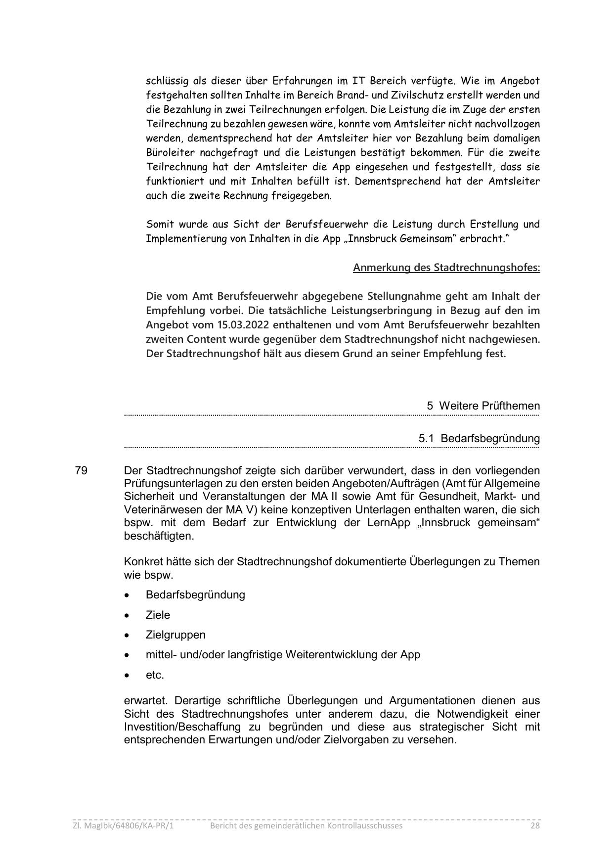Sicht des Stadtrechnungshofes unter anderem dazu, die Notwendigkeit einer